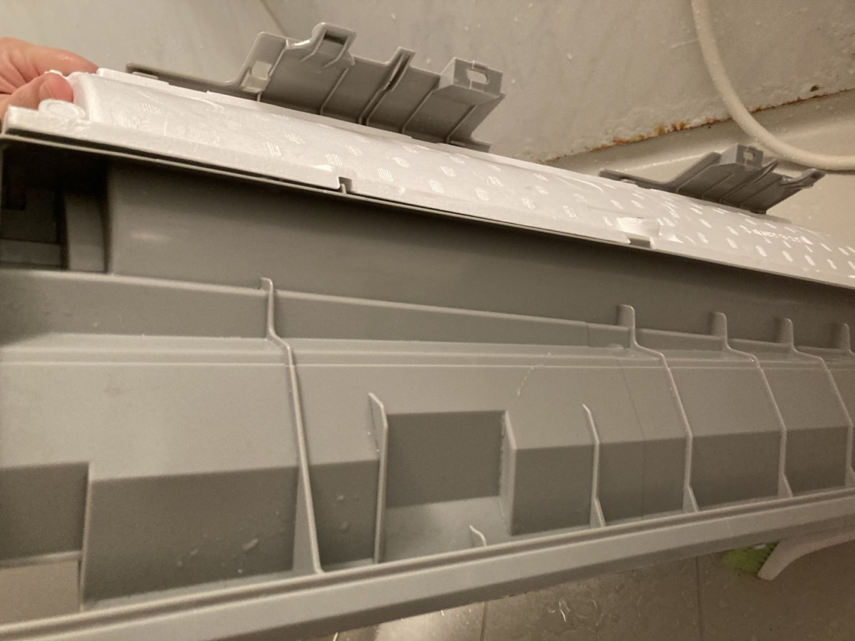 早速、エアコンを分解していくと、ティッシュペーパーが出て来ました。