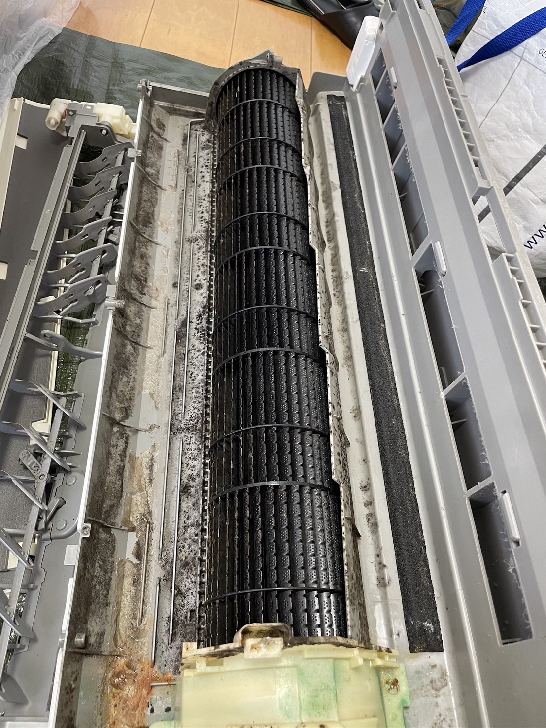 文京区『エアコンクリーニング』ダイキン_エアコンパーツはカビだらけです(>ω<、)