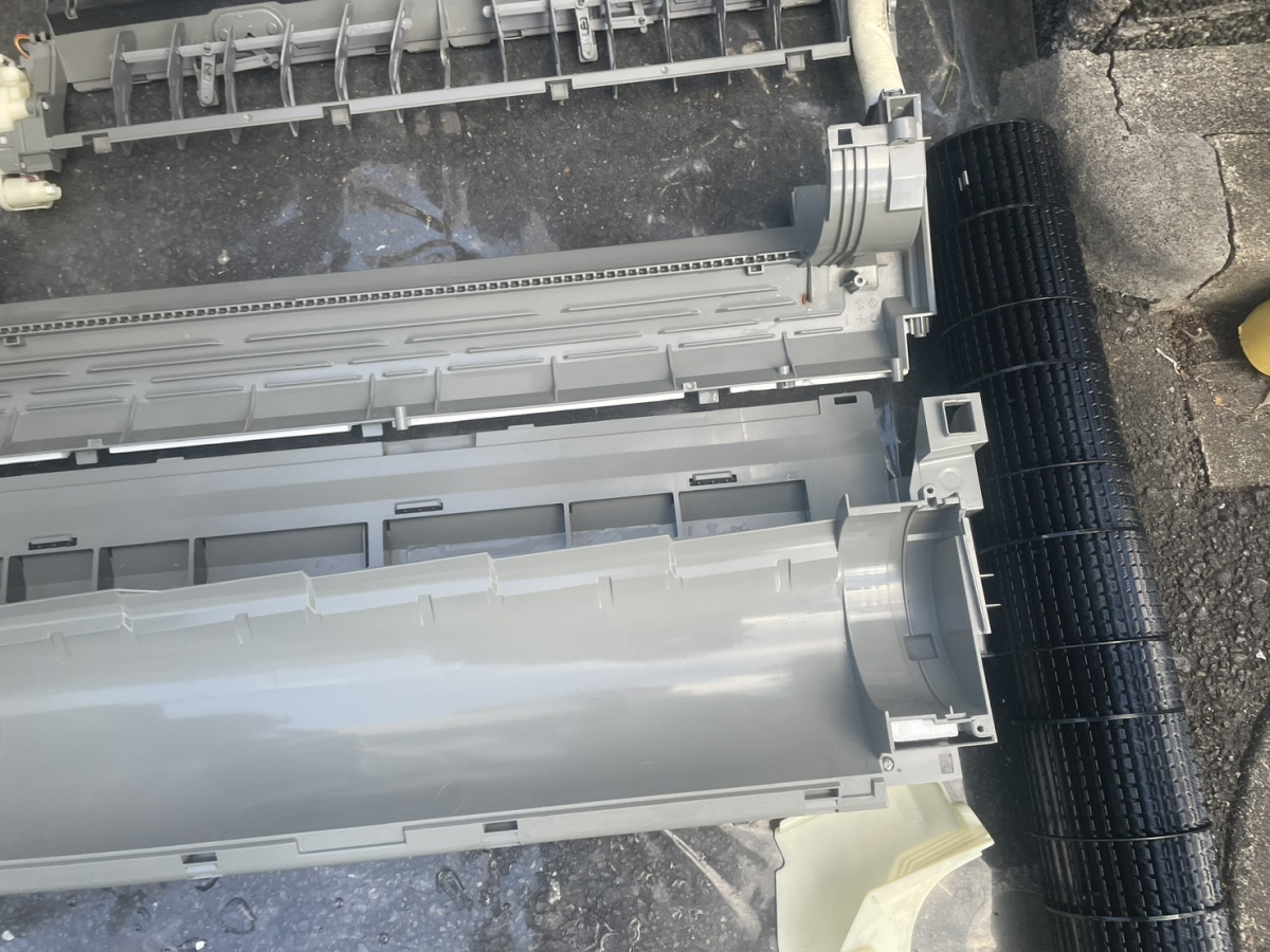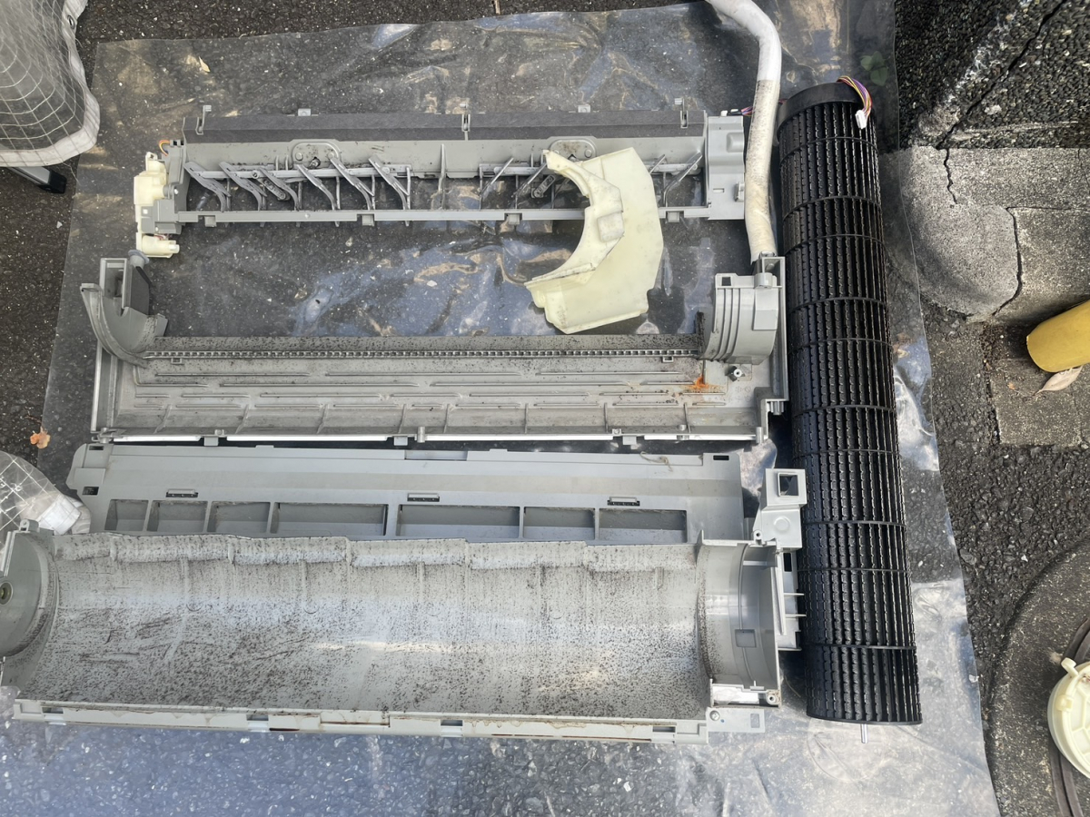 今回は、エアコン本体を壁から外して洗浄させていただきました。