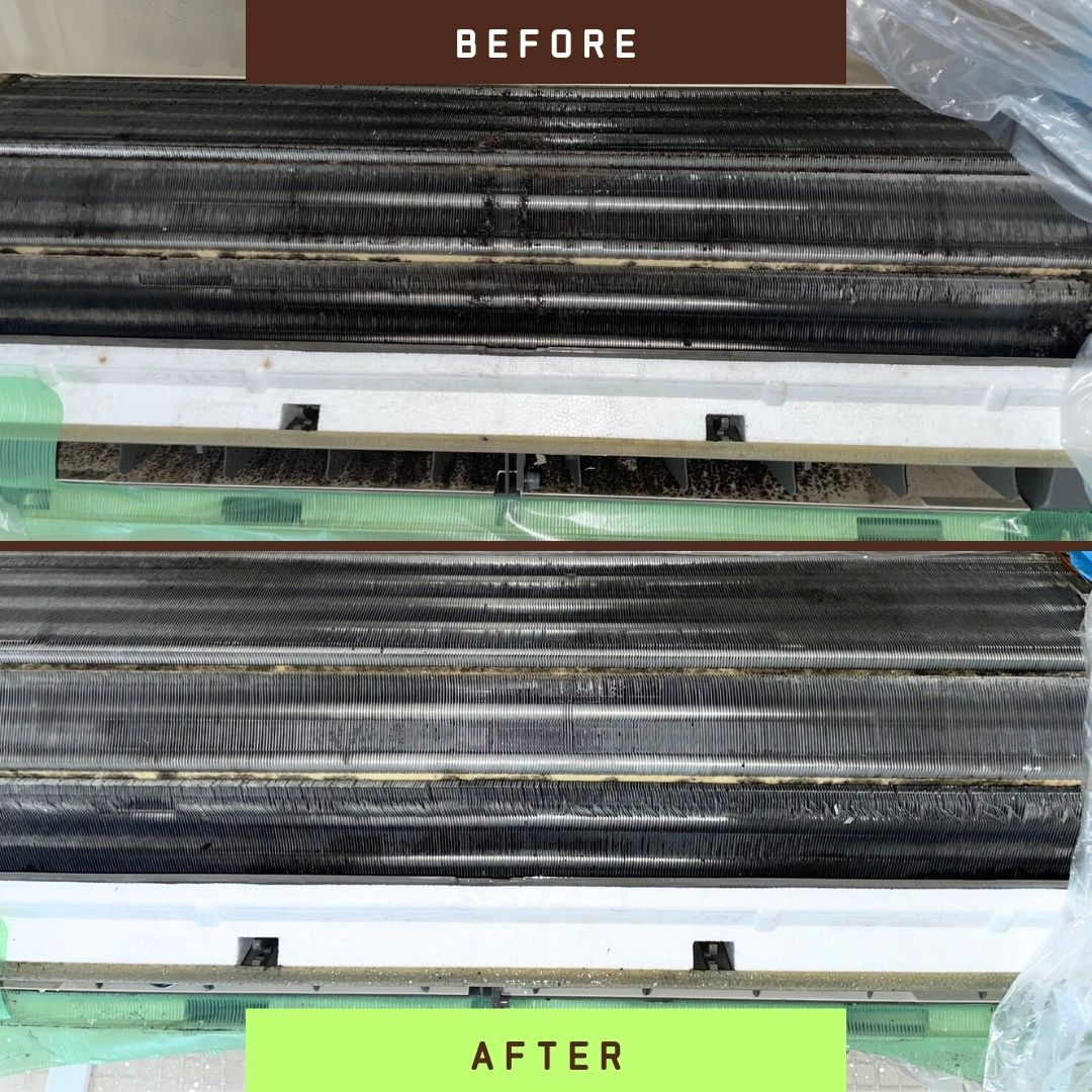 高圧洗浄の際には圧力も調整し、古いアルミフィンやシロッコファンを傷めないように配慮。さらに除菌・防カビ仕上げで、臭いやカビの原因を根本から除去します。
