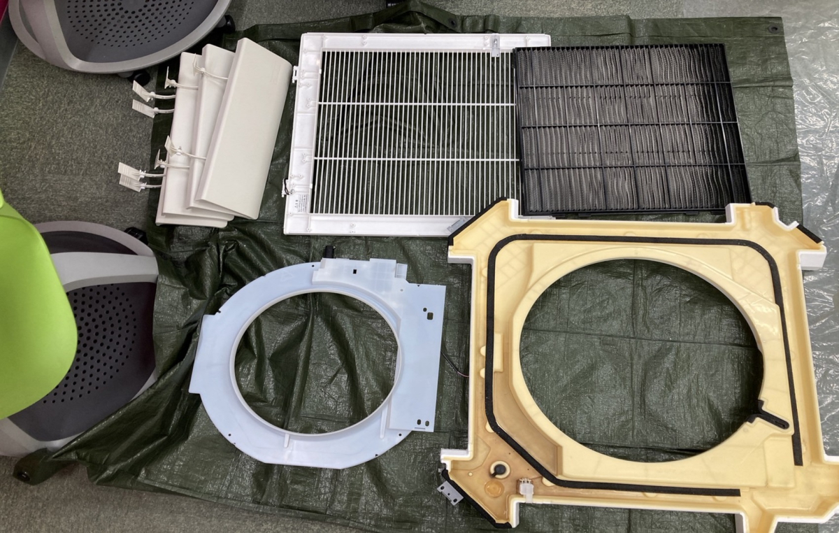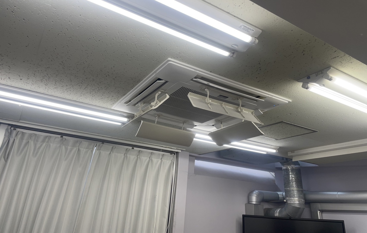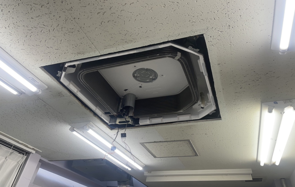 文京区千駄木『エアコンクリーニング』天井カセット型エアコン(4方向)の汚れの原因と清掃の重要性◎