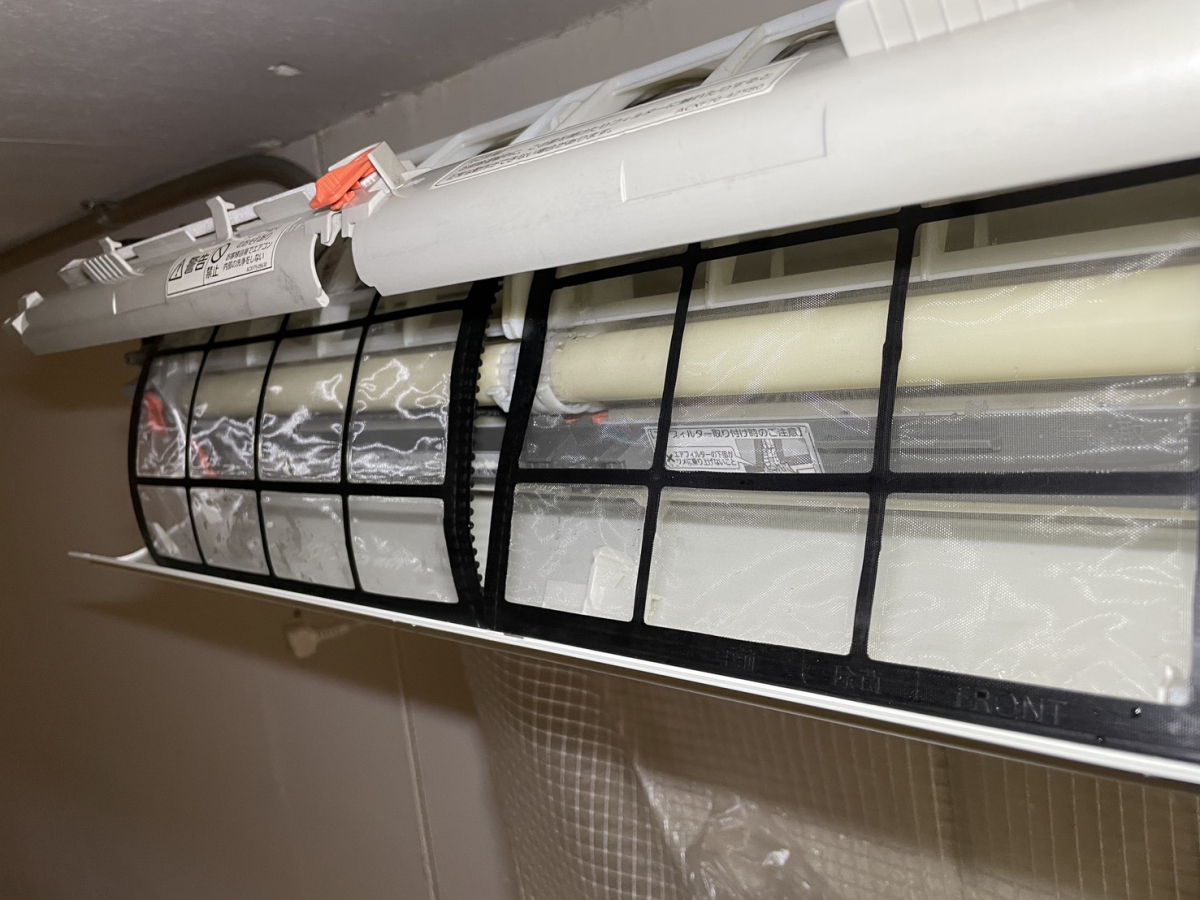 Panasonic製のお掃除機能付きエアコンでしたが、なんとフィルターが真っ黒!