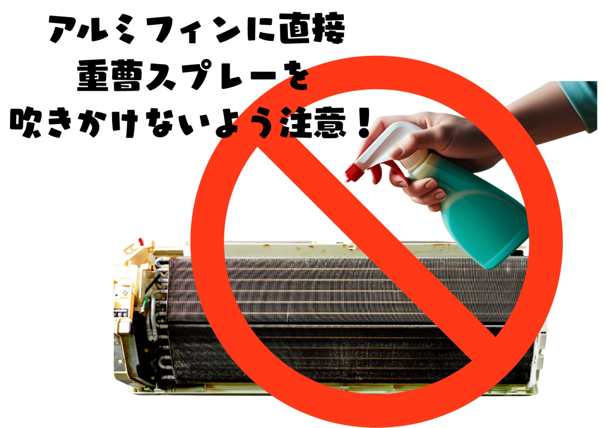 ※アルミフィンに直接重曹スプレーを吹きかけないように注意しましょう。重曹スプレーは必ず雑巾に吹きかけて使用してください。