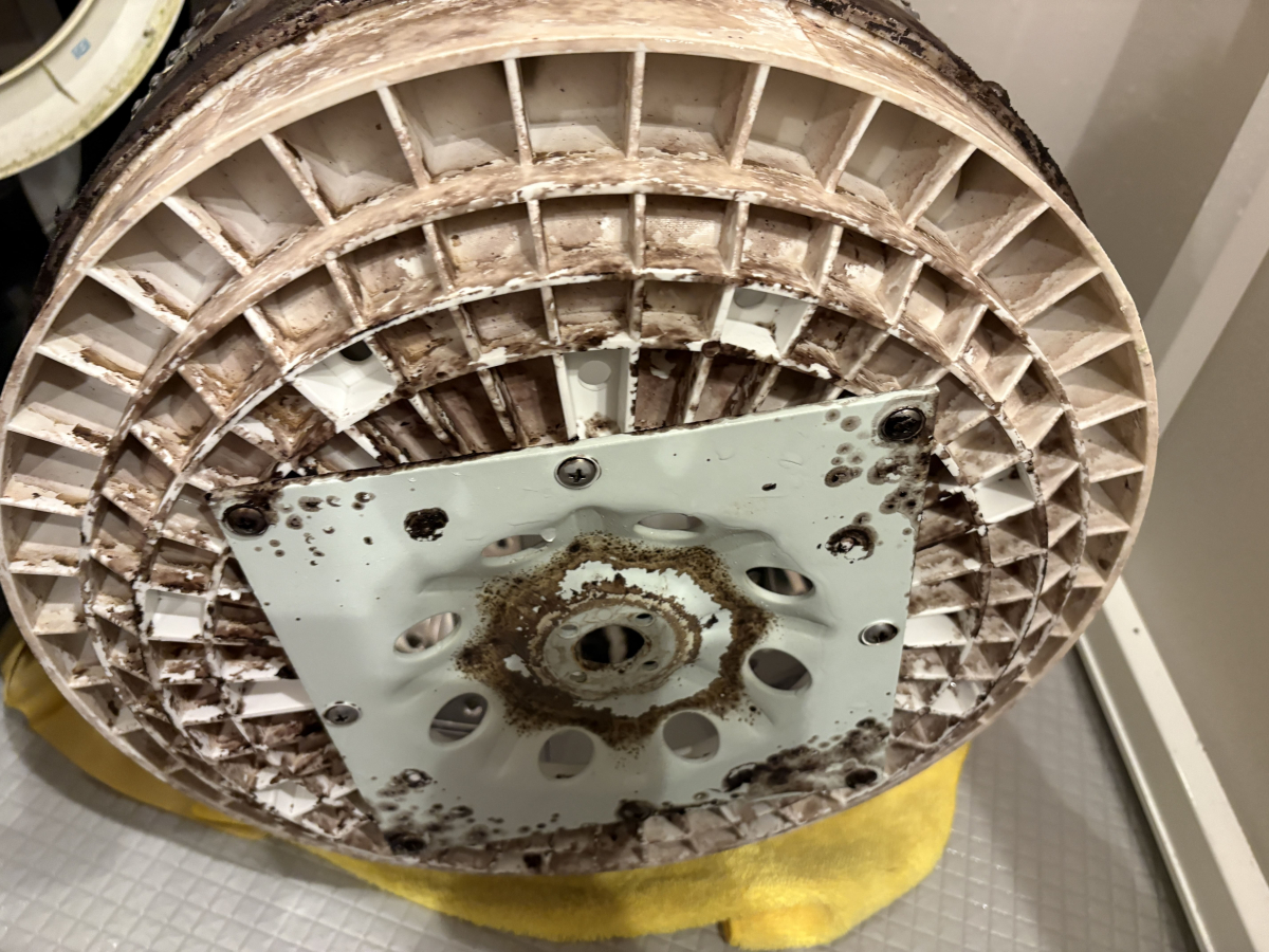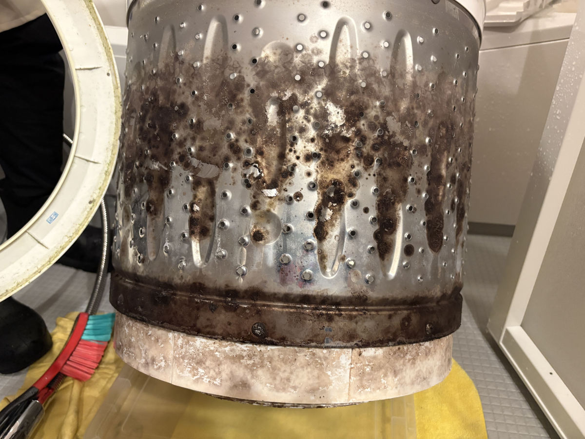 市販の洗濯槽クリーナーを使っても改善せず、思い切って分解洗浄をご依頼くださいました。