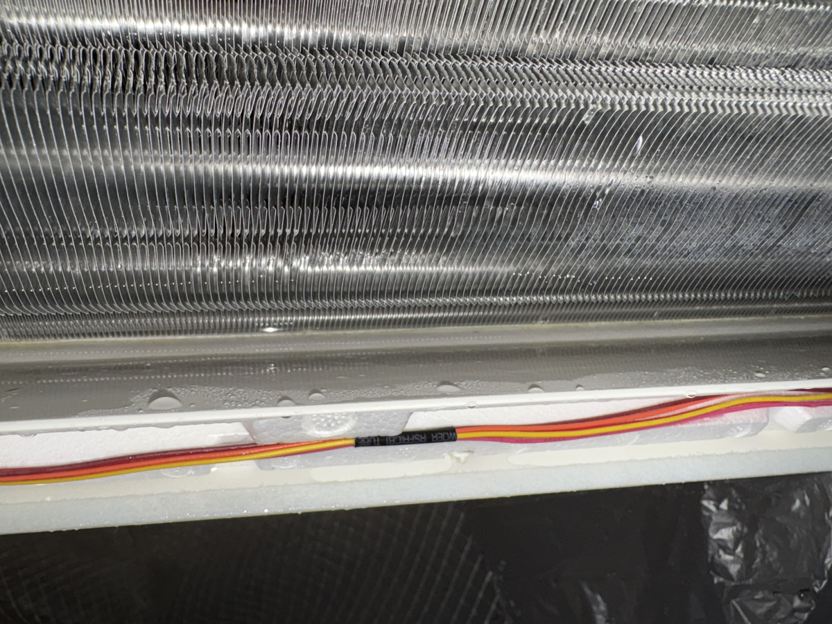 エアコンのカバーを開けて、熱交換器や吹き出し口などを確認してみましたが、一見すると目立った汚れは見当たりません。