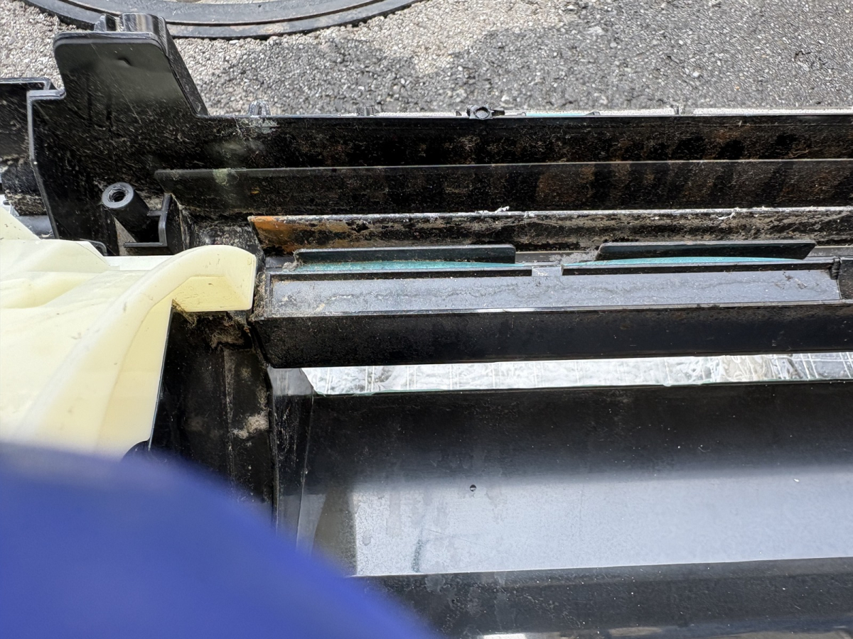 実際に分解を進めていくと、外からは見えない部分にホコリやカビ汚れがしっかり蓄積している状態でした。