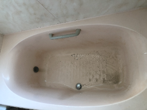 浴室の壁は、膝から下に付きやすいシャンプーや石鹸の汚れが分厚い層になっており、この分厚さは、なかなかプロ以外の方が判断することが難しいですが、スポンジを壁に当てて擦ってみるとすごく抵抗を感じて、スポンジが滑らかに動かないです。(イメージは止まる感じですね・・・。)