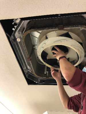 昨日に引き続き、エアコン祭りにお出かけしたおそうじ革命 兵庫芦屋中央店のおくいです。本日は、気合とスピード勝負の天井タイプのエアコン11台を徹底お掃除!
