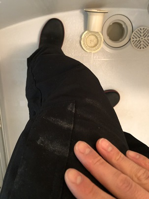 これで大体のことがわかります。今回のお部屋に暮らされていた方は、膝から下ばかりに石鹸カスがついていました。そのため、イスに座りながら体や髪を洗っていたことがわかります。その辺りを重点的にお掃除していかないと、全体がキレイに仕上がってこないのです。