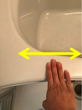 浴室に入り、手の平で浴槽のフチを軽く擦り、ズボンに手を当てると・・・。