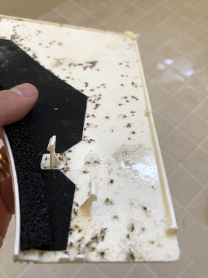カバーは、黒カビが繁殖・・・。そして、羽アリのような虫がたくさんついておりました。