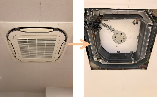 1日目は、介護施設へご訪問して天井に設置してあるタイプのエアコン2台、壁についているエアコン2台、浴室乾燥機2台の洗浄にお出かけしました。