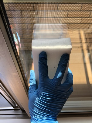 メラニンスポンジをしっかりと濡らして、窓ガラスを擦ってみましょう!