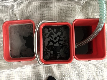 エアコンは、とてもキレイになりました!汚水もなななな~っとバケツ3杯!長年の蓄積した汚れがキレイになって安心ですね!
