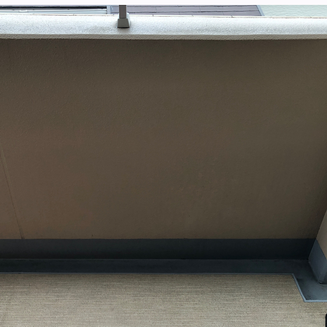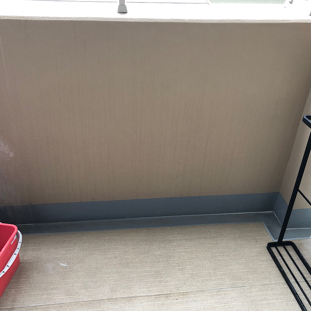 今回のベランダは、腰壁に雨だれ汚れがくっきりと残っています。