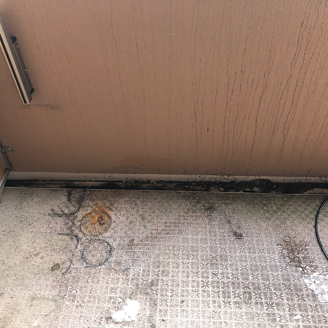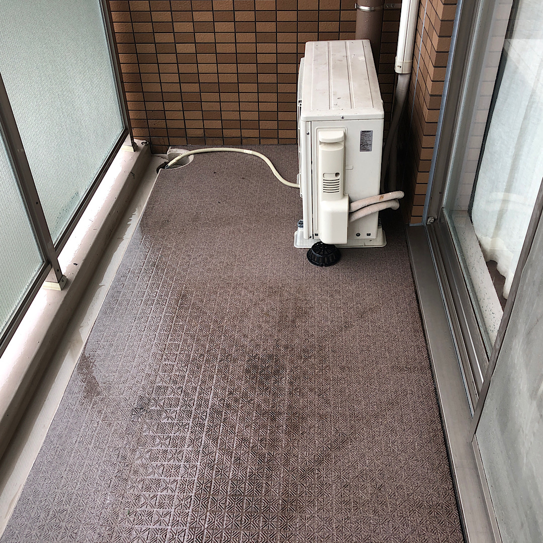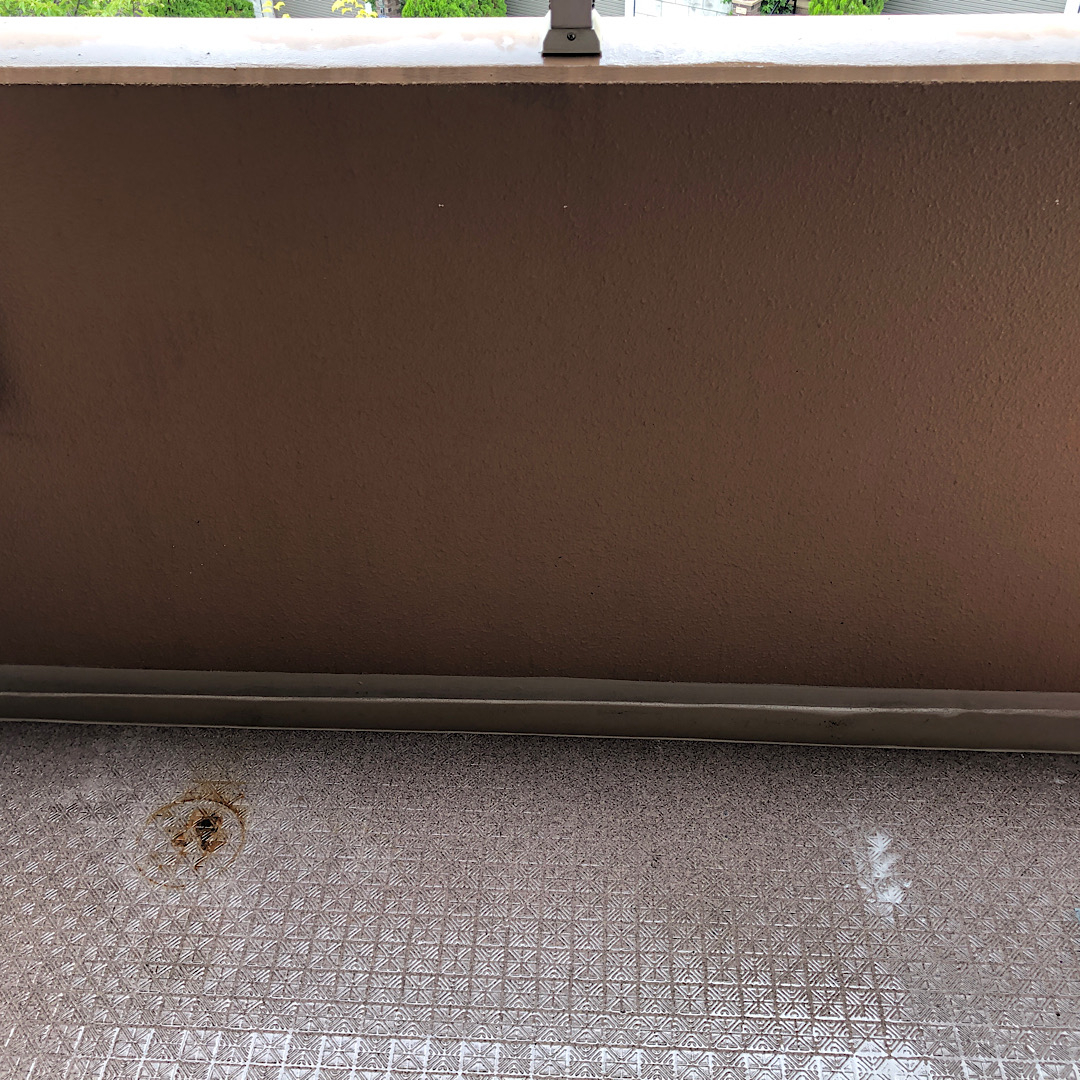お掃除のやり方がわからない方は、こんな感じでベランダが汚れていることが多いです。そして、一度もやっていないと排水口の水はけも悪くなっていることもあります。