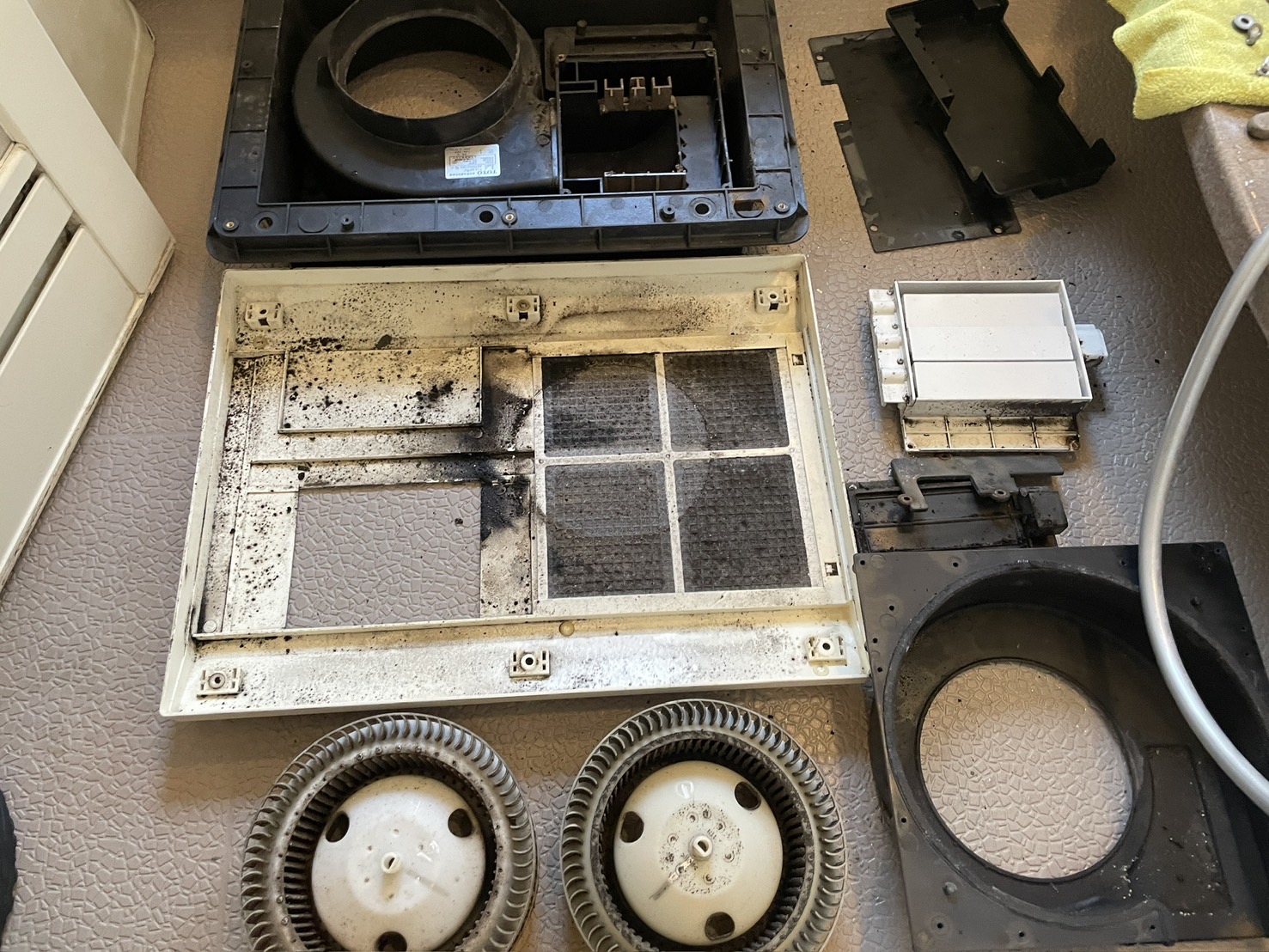 文京区本郷『エアコンクリーニング』天井エアコン_マンションの廊下のエアコンはとても汚れています
