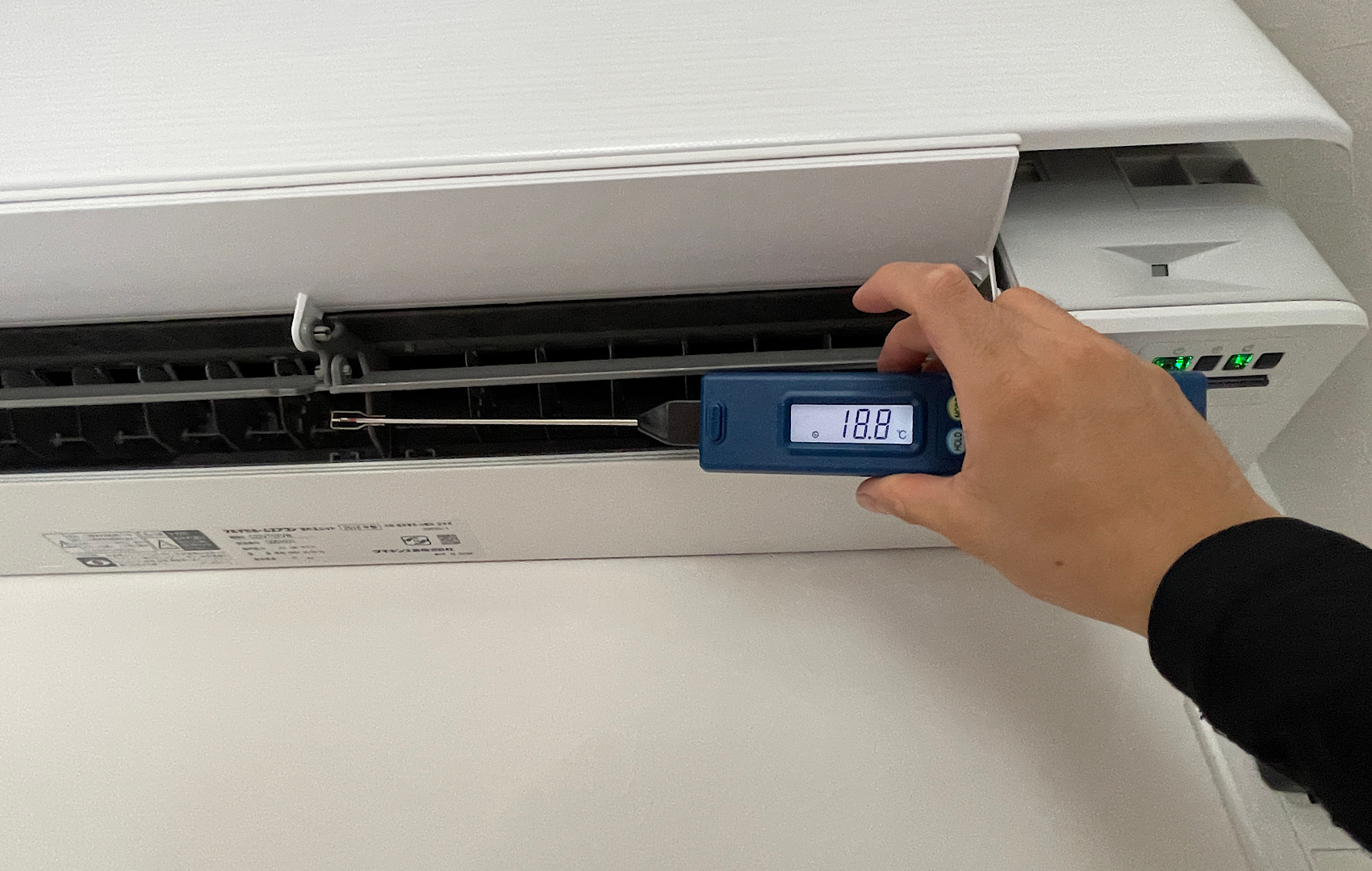 文京区『エアコンクリーニング』ご家庭のエアコン、風量と温度測定しております!