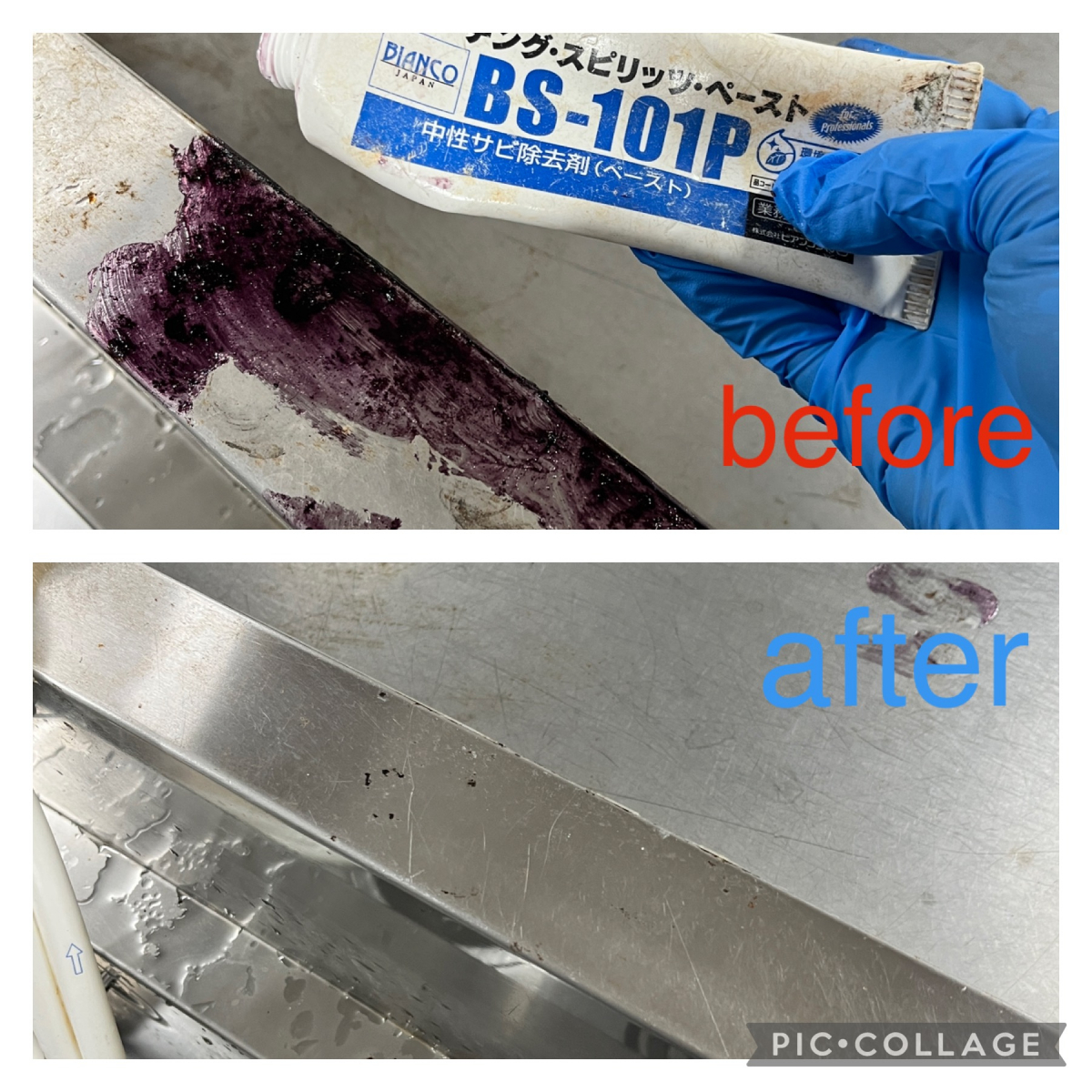 ※(注意)ステンレスに溶け込んでいる変色は落とす事が難しい場合もございます。