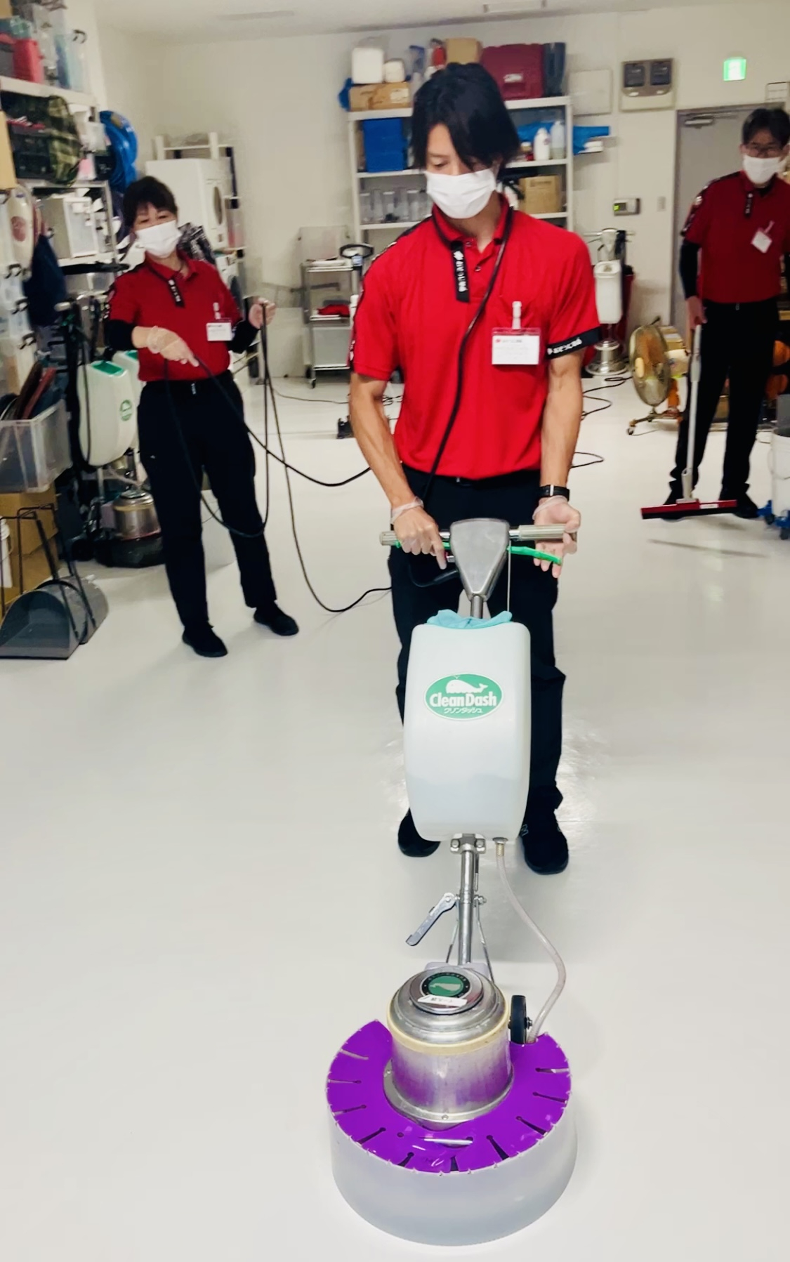 本日の実習は、広範囲の床が清掃できる『ポリッシャー』の実習でした!