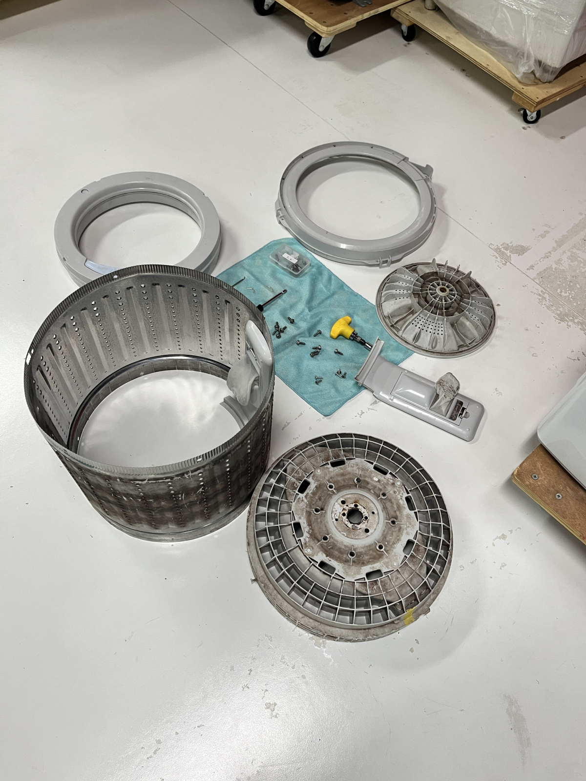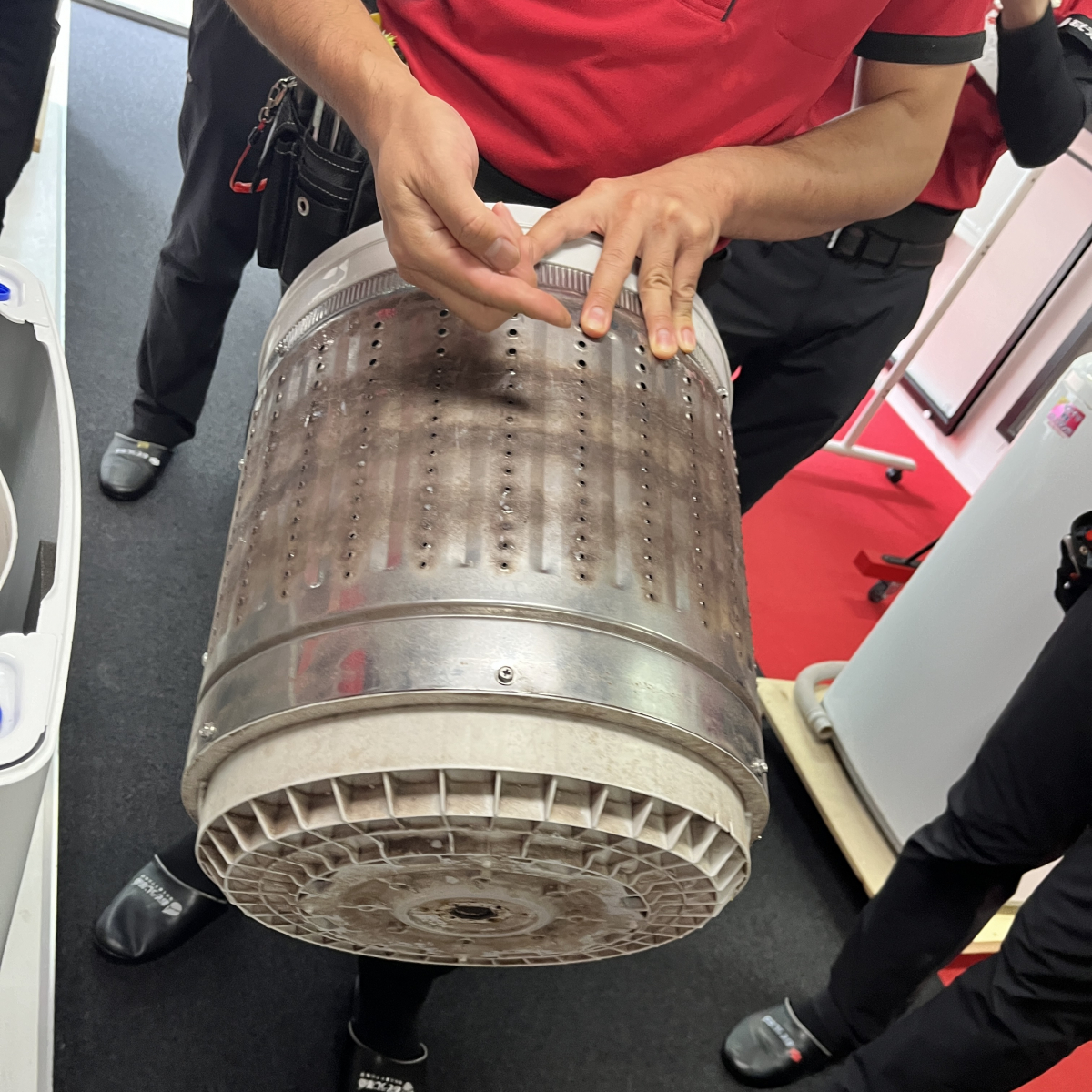 実際に研修で洗濯機を分解してみるとこんな感じに、、、