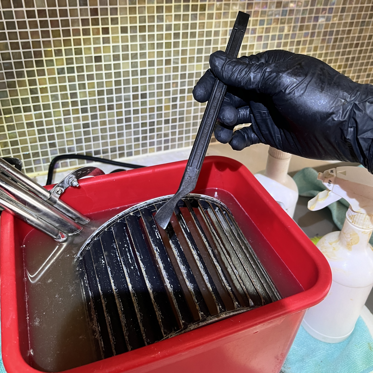 こちらの羽に油がこびり付くので洗剤に漬け置きし