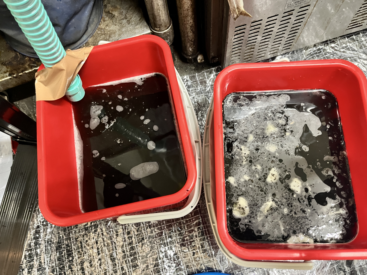 汚水もペール2杯分ビッシリのカビ汚れが、、、。