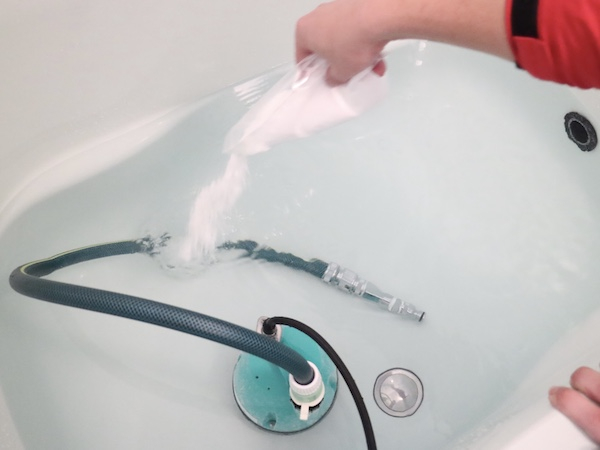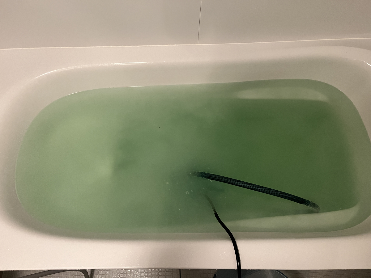 追い焚き風呂の配管は雑菌だらけ!?川西市大和 浴室追い焚き配管除菌洗浄実施中!