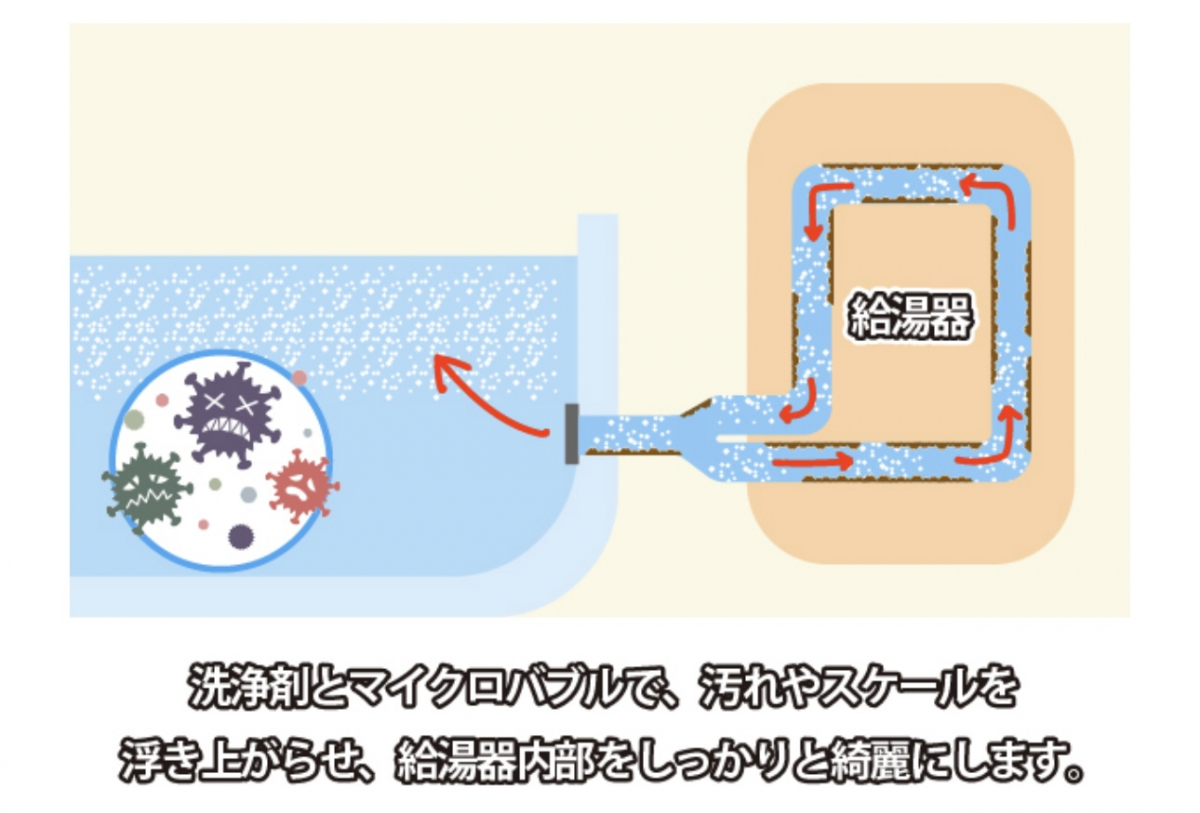 おそうじ革命では「浴室追い焚き配管除菌洗浄」を承っております。マイクロバブルと専用の薬剤で、配管内部に溜まった汚れをすっきり綺麗に除去します!