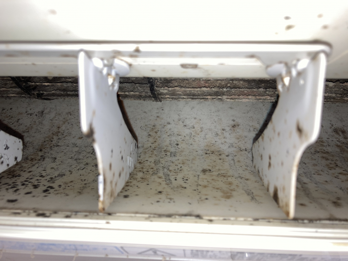 設置場所がキッチンのすぐ側という事もあり、中には黒カビやホコリだけではなく油汚れなども付着していました(>_<)