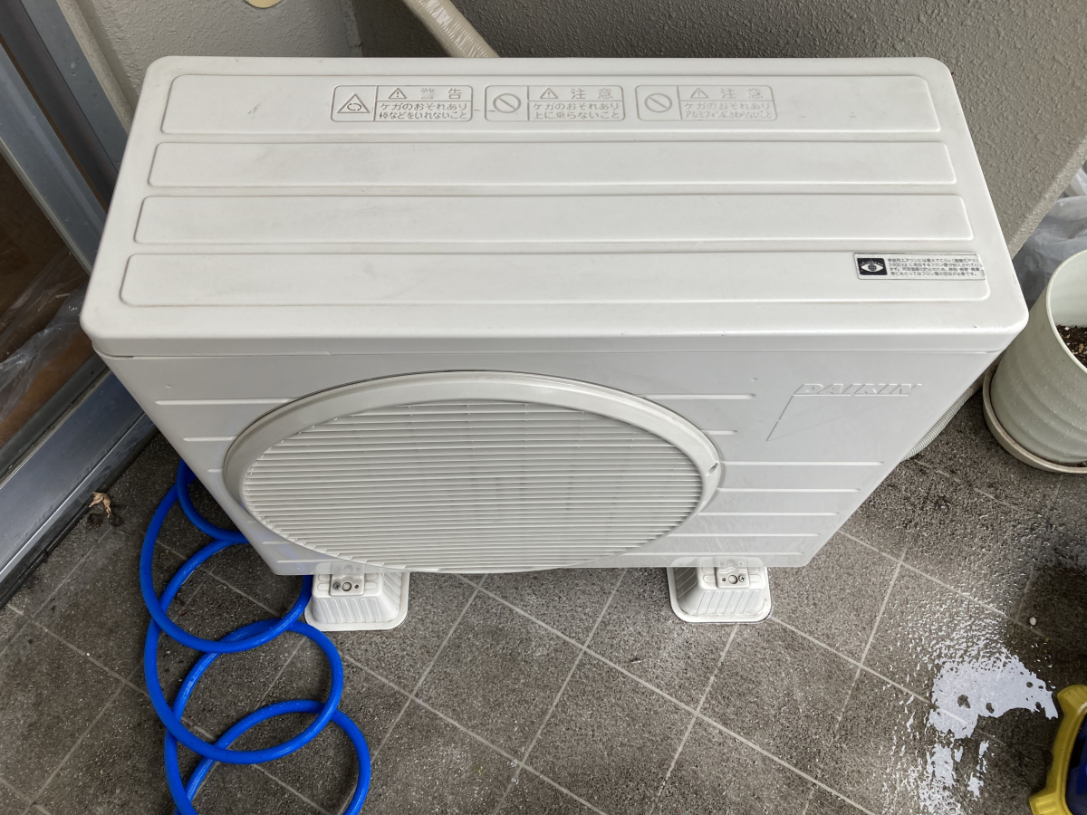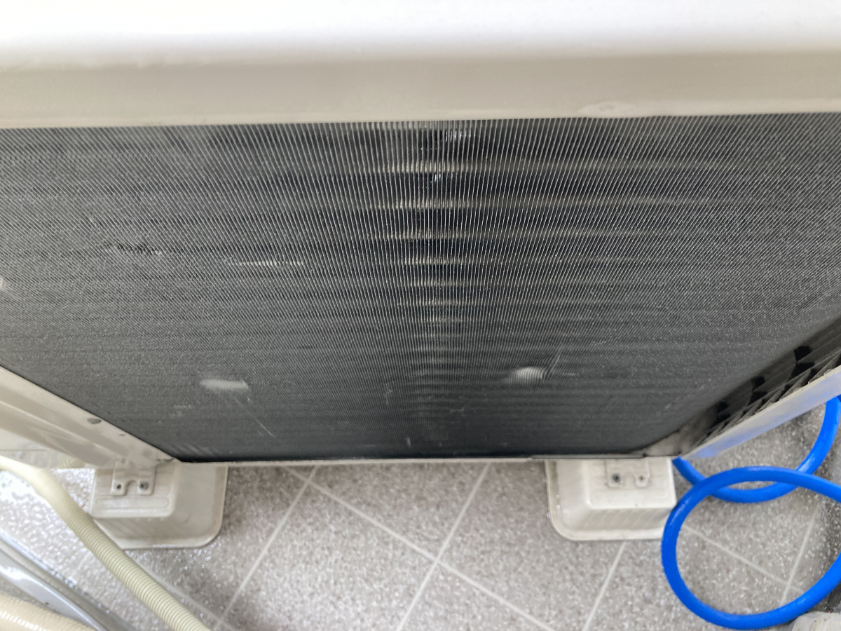 今回は裏側のアルミフィン部分を高圧洗浄機で洗浄しました(^^)