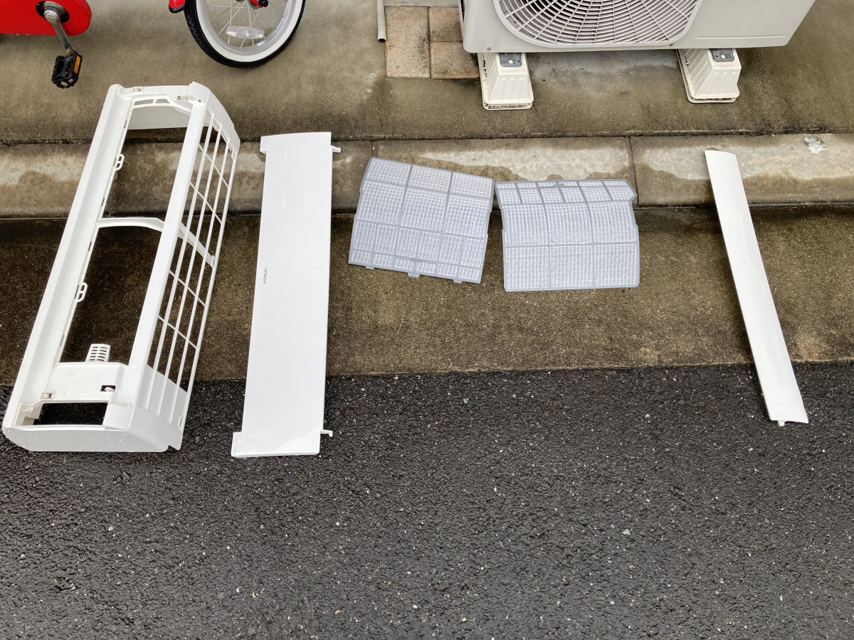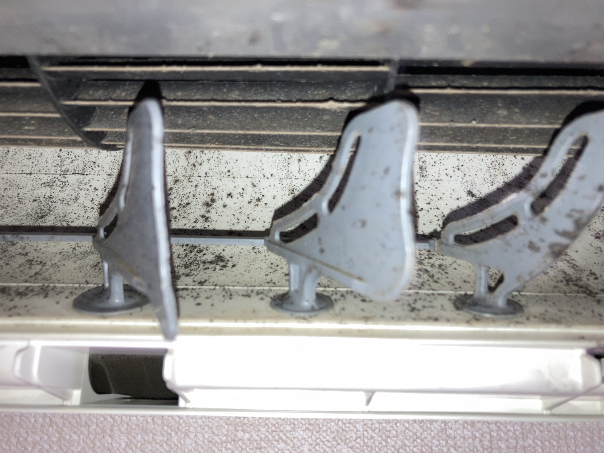 部品やアルミフィンはそんなに汚れてはいませんが、送風ファンがカビだらけでした(-。-;