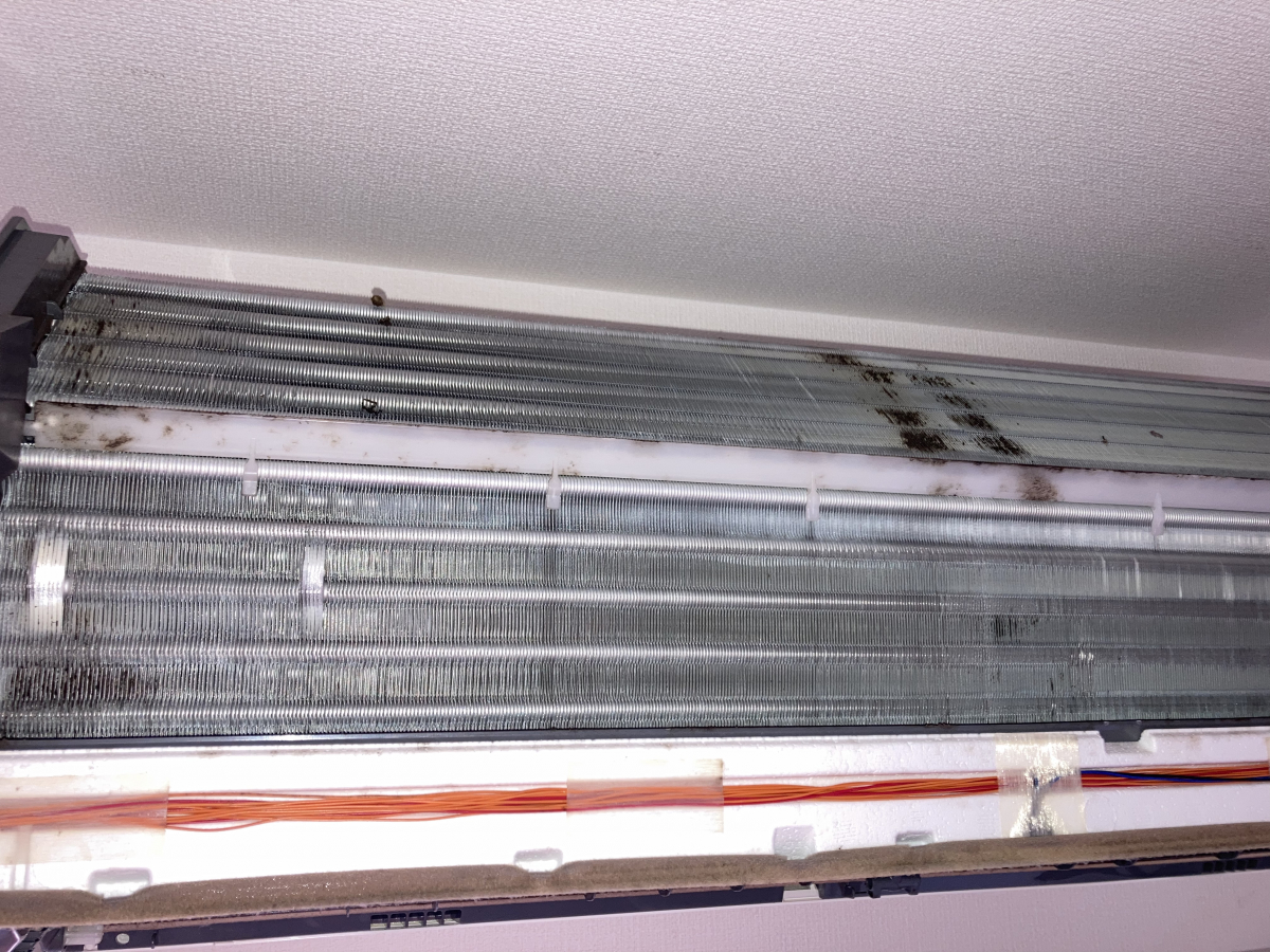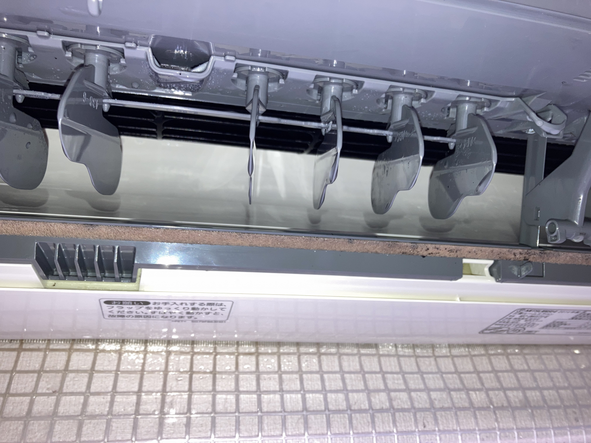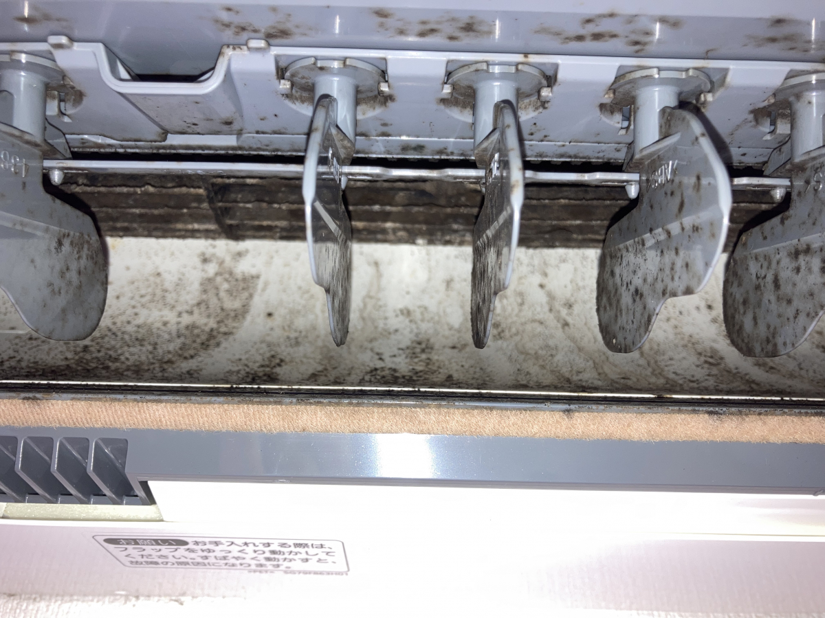 キッチンに設置されていたエアコンだったので、中は油汚れなども付いていてかなりヒドイ状態でした(-。-;
