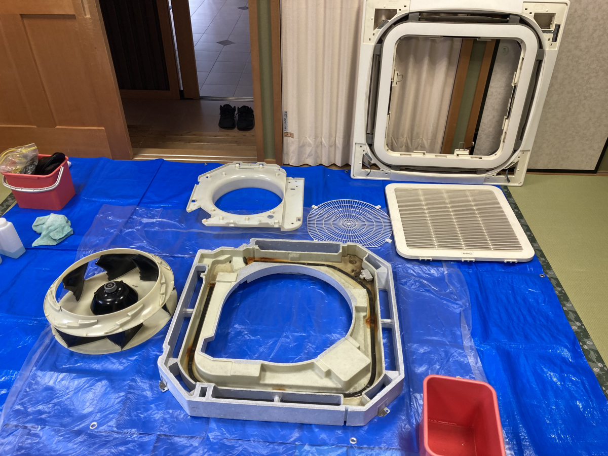 写真では少しわかりずらいですが、お寺なので線香を焚いてたりする部屋のエアコンはかなり汚れていました(^^;;