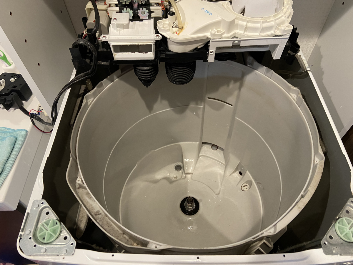 洗濯槽を外した箇所はこんな感じで上側の部分がどうしても洗剤などが残ってしまい、かなり汚れていますね!
