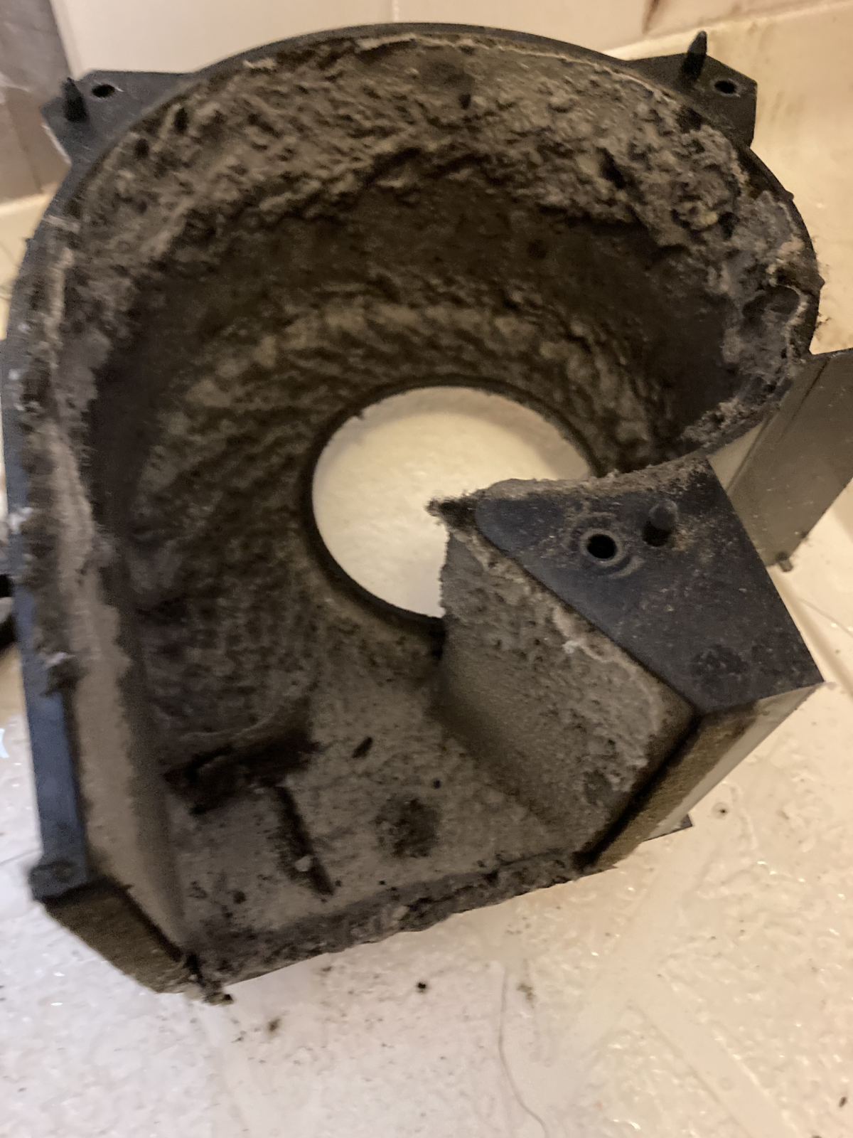 この状態で、換気扇を運転しても換気はもちろん正常にできず、カビの胞子を散りばめているだけになります^^;