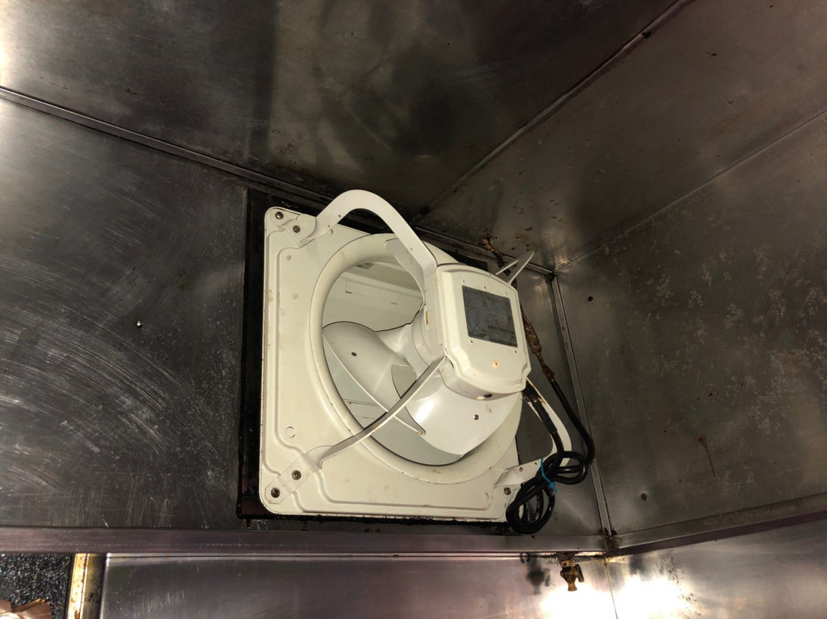 ↓下記の写真は土浦市にある旅館の厨房の換気扇のお掃除の様子です。