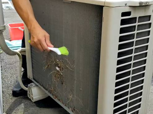 エアコンの冷房効率アップ?!ブラシ1つで超カンタン室外機おそうじ|おそうじ革命水戸