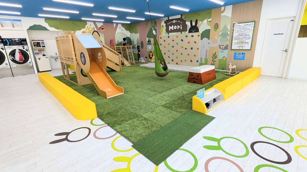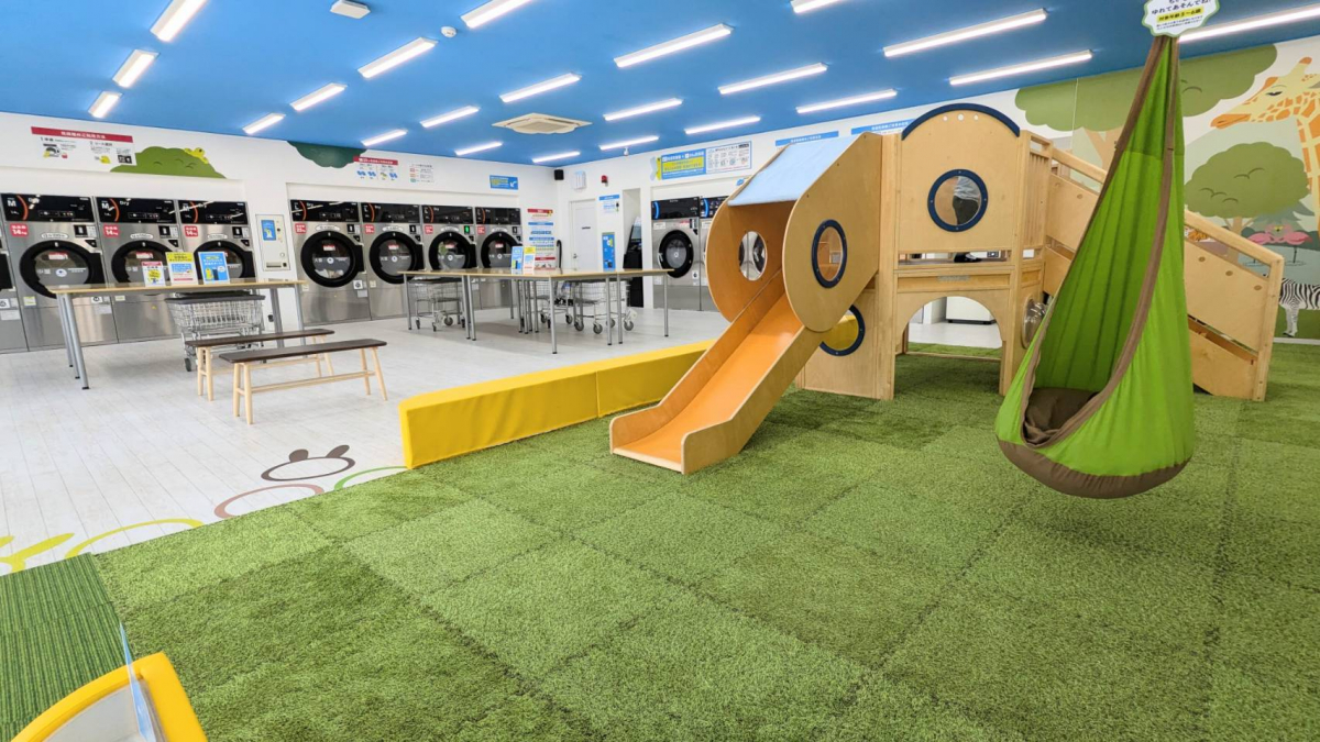 キッズコーナー(しかも大きめ)が設置されているコインランドリーです(≧▽≦)
