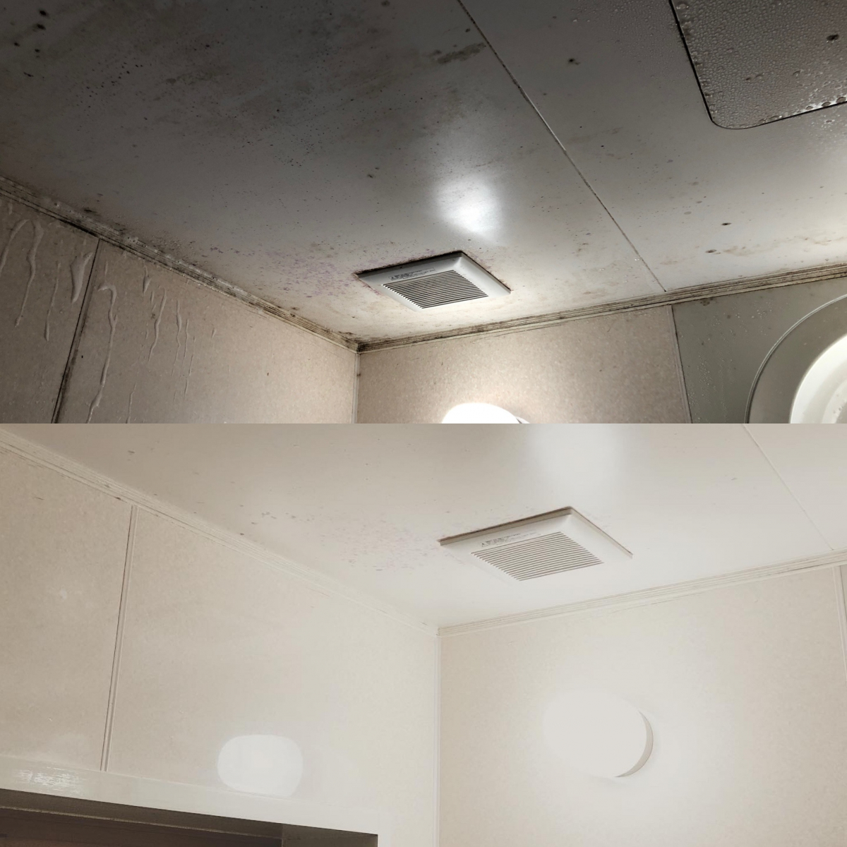 天井から壁と確かにカビ汚れが目立ちます。