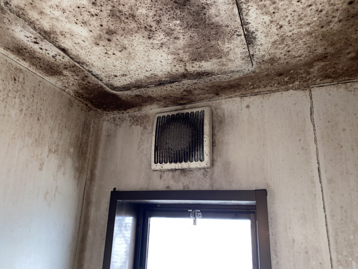 長年の汚れを放置しといたため、壁や天井が変色しています。