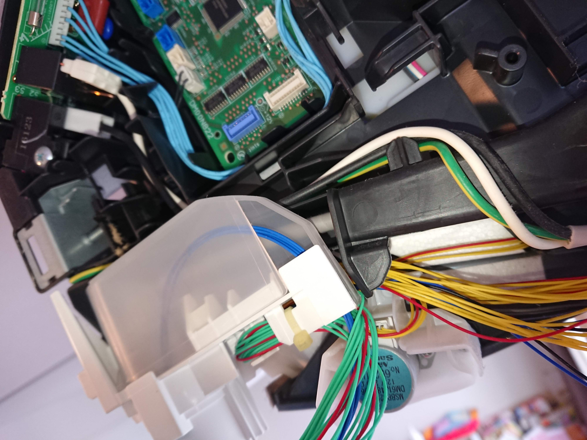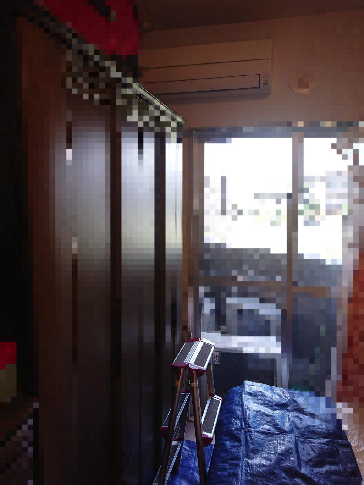 真下ではありませんが、なんとか脚立が置くスペースがありましたので、収納ボックスを養生して作業しました。プラスチック製で不安定な収納ボックスの場合は、足を載せる事ができませんので、その辺は様子を見て判断します。