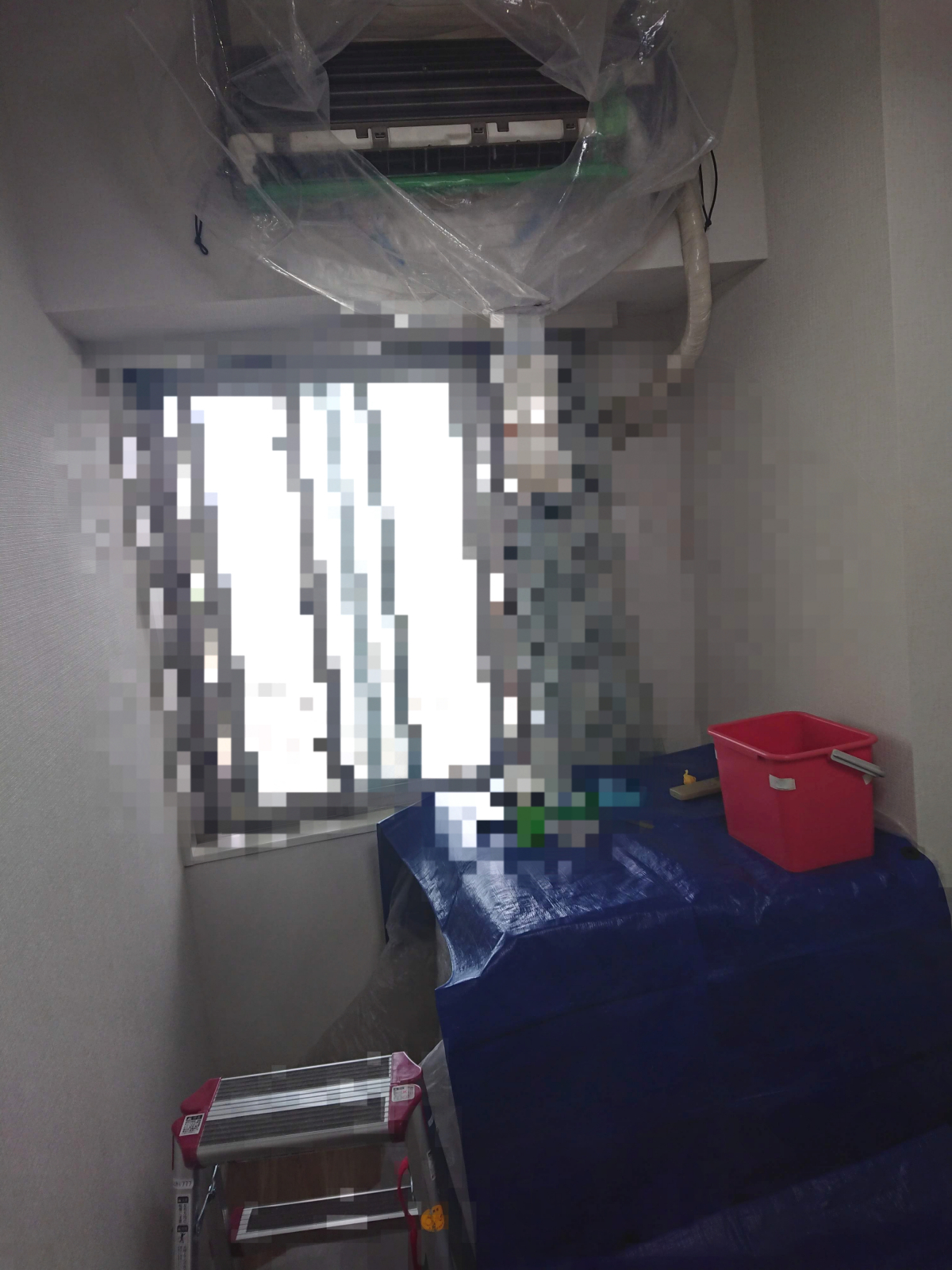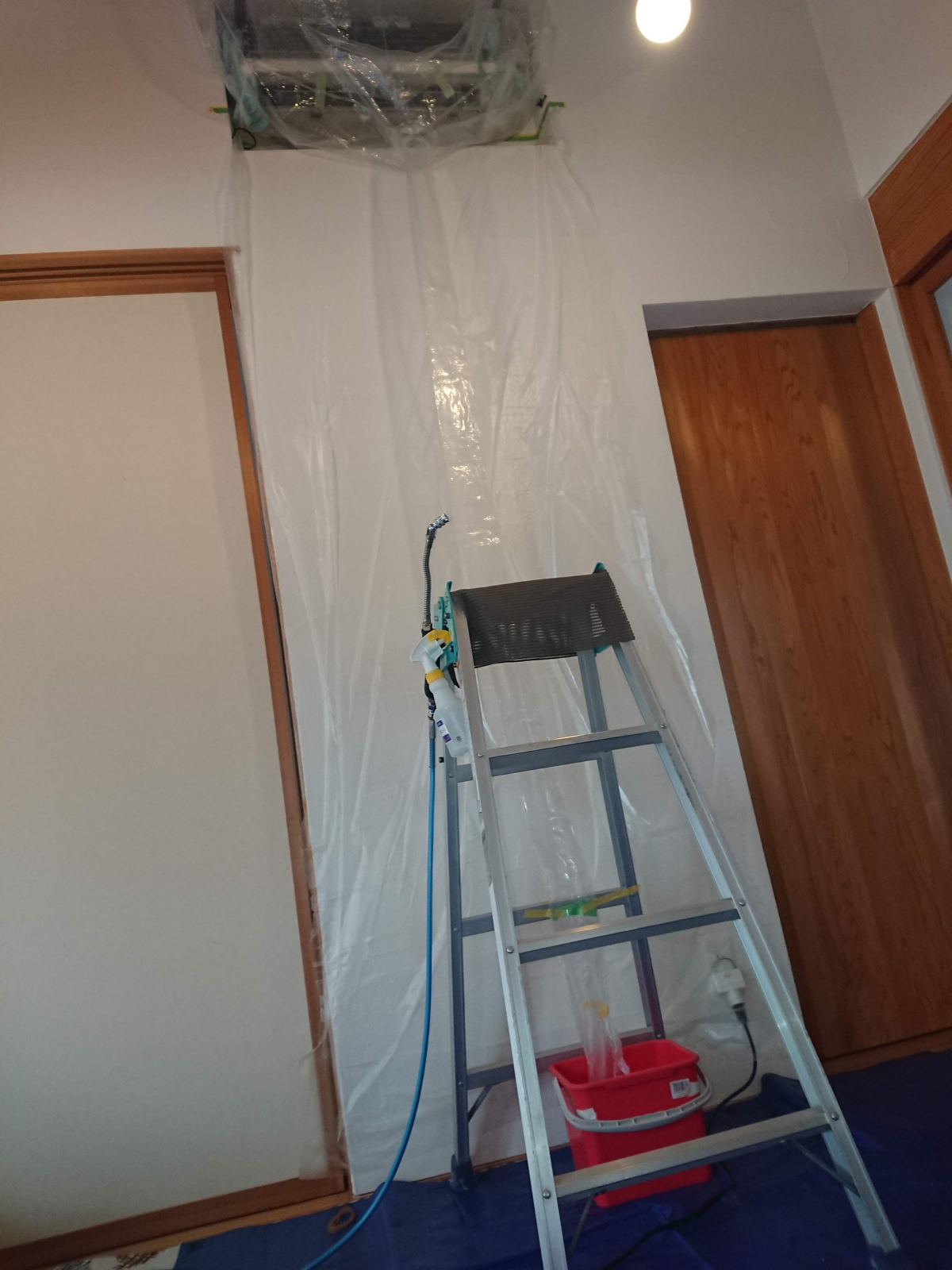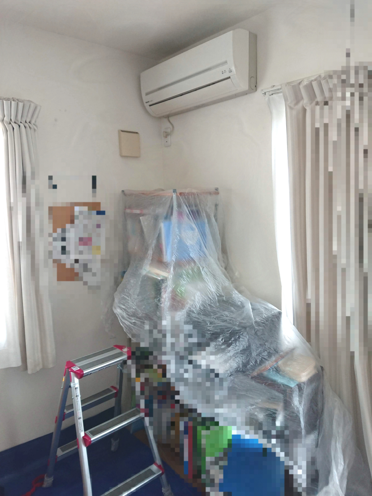 エアコンの下に脚立が置けるスペース(1㎡程度)が必要になるので、もし動かせる場合は事前に動かして頂き、