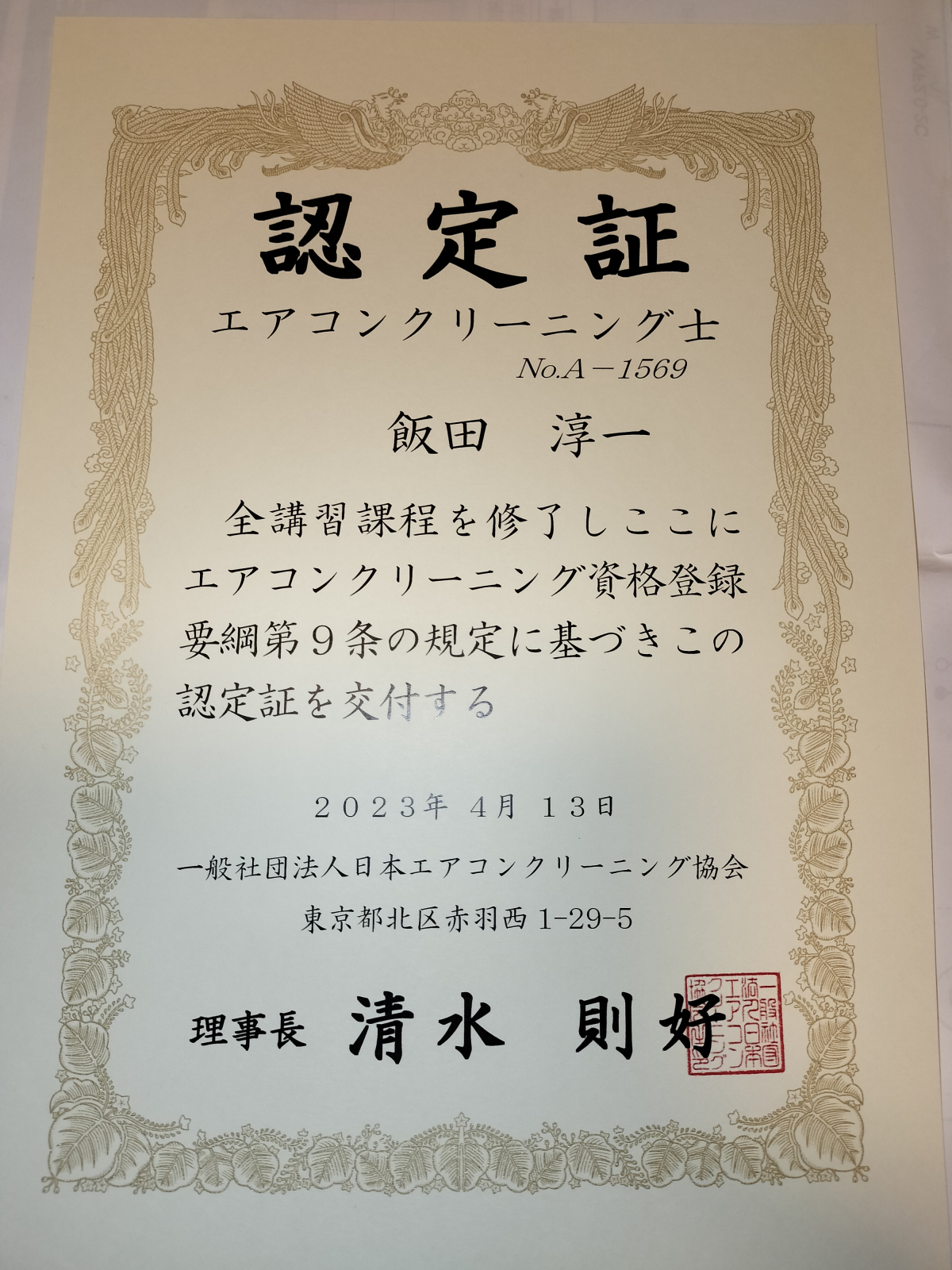 2023年4月13日に「エアコンクリーニング士」の