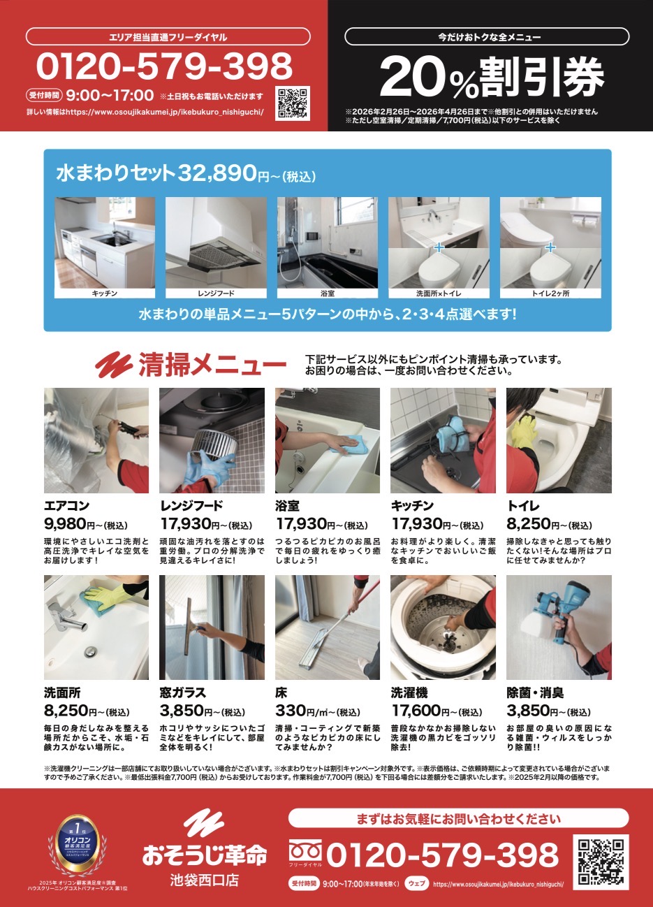 【祝・オープン】おそうじ革命 池袋西口店が開業!今なら「20%割引券」で家中ピカピカに✨