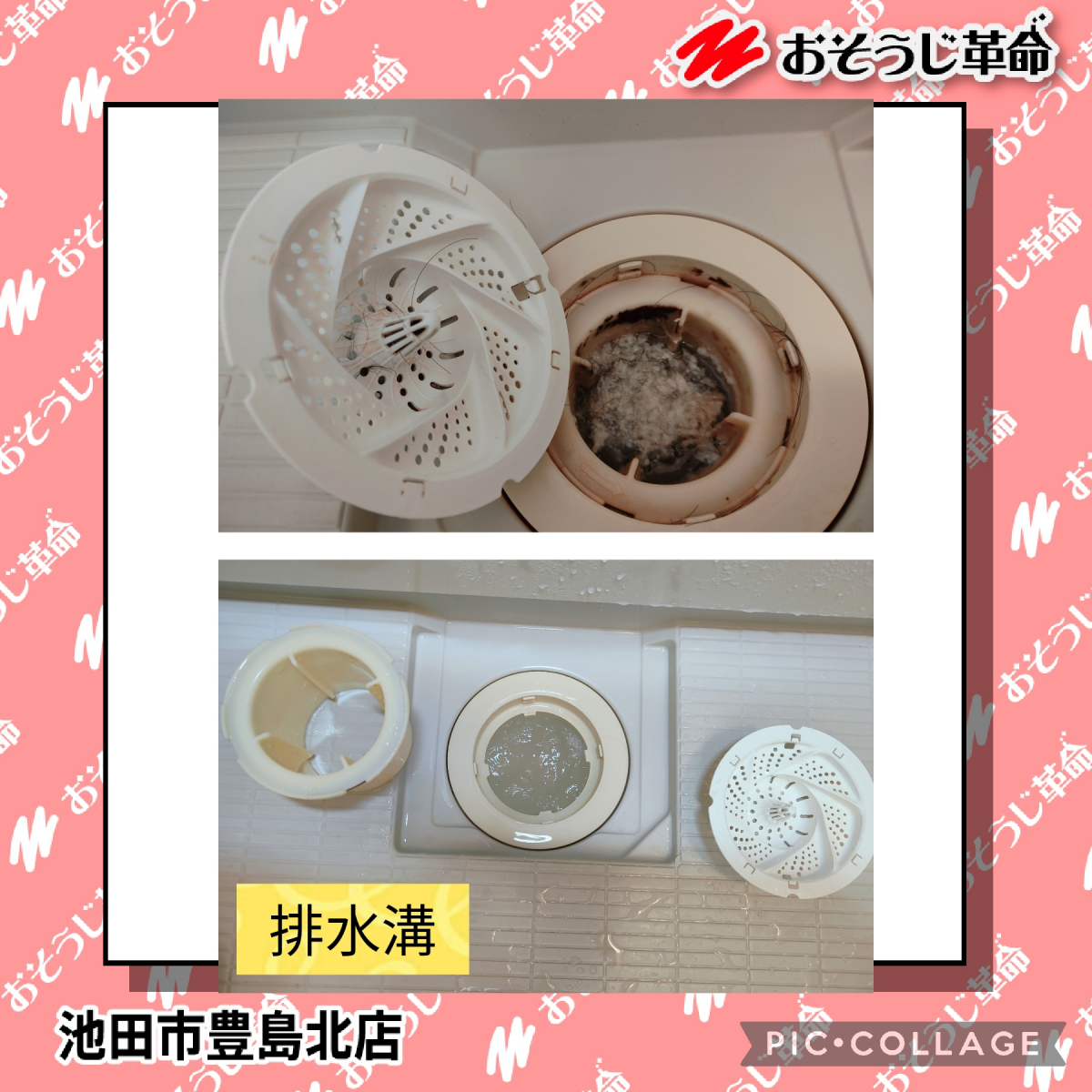 浴室イス、排水溝のビフォー・アフターをお見せし、綺麗になったことに喜んでいただけました。
