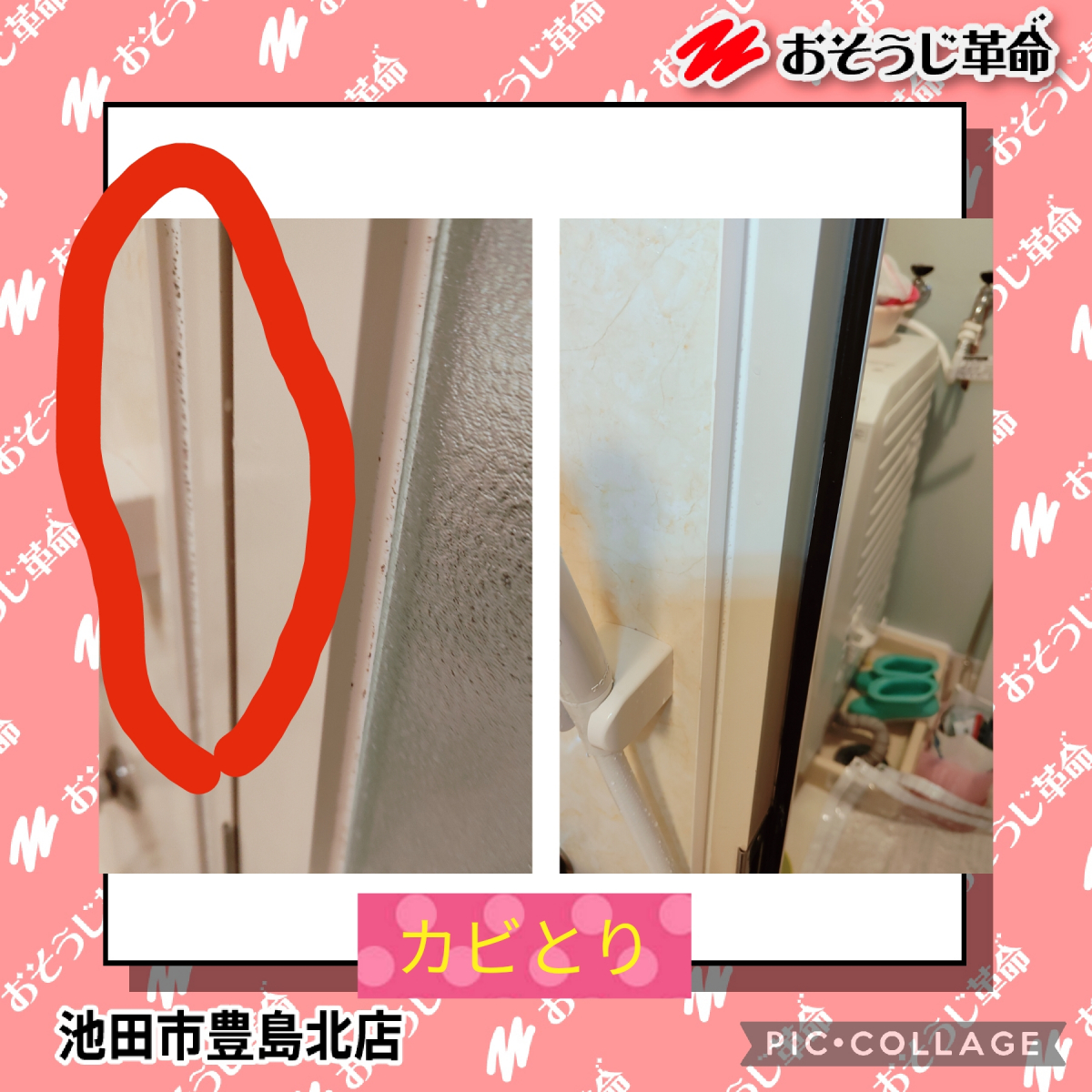 浴室は扉の水垢とエプロン内部のカビを気にされていたので、