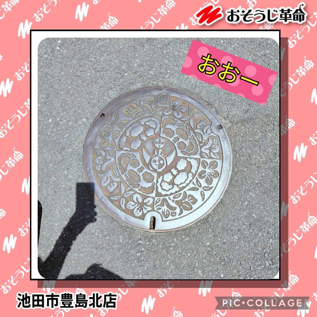 左手のみで台車をゆっくり押してたら、太陽の塔のマンホールを発見。