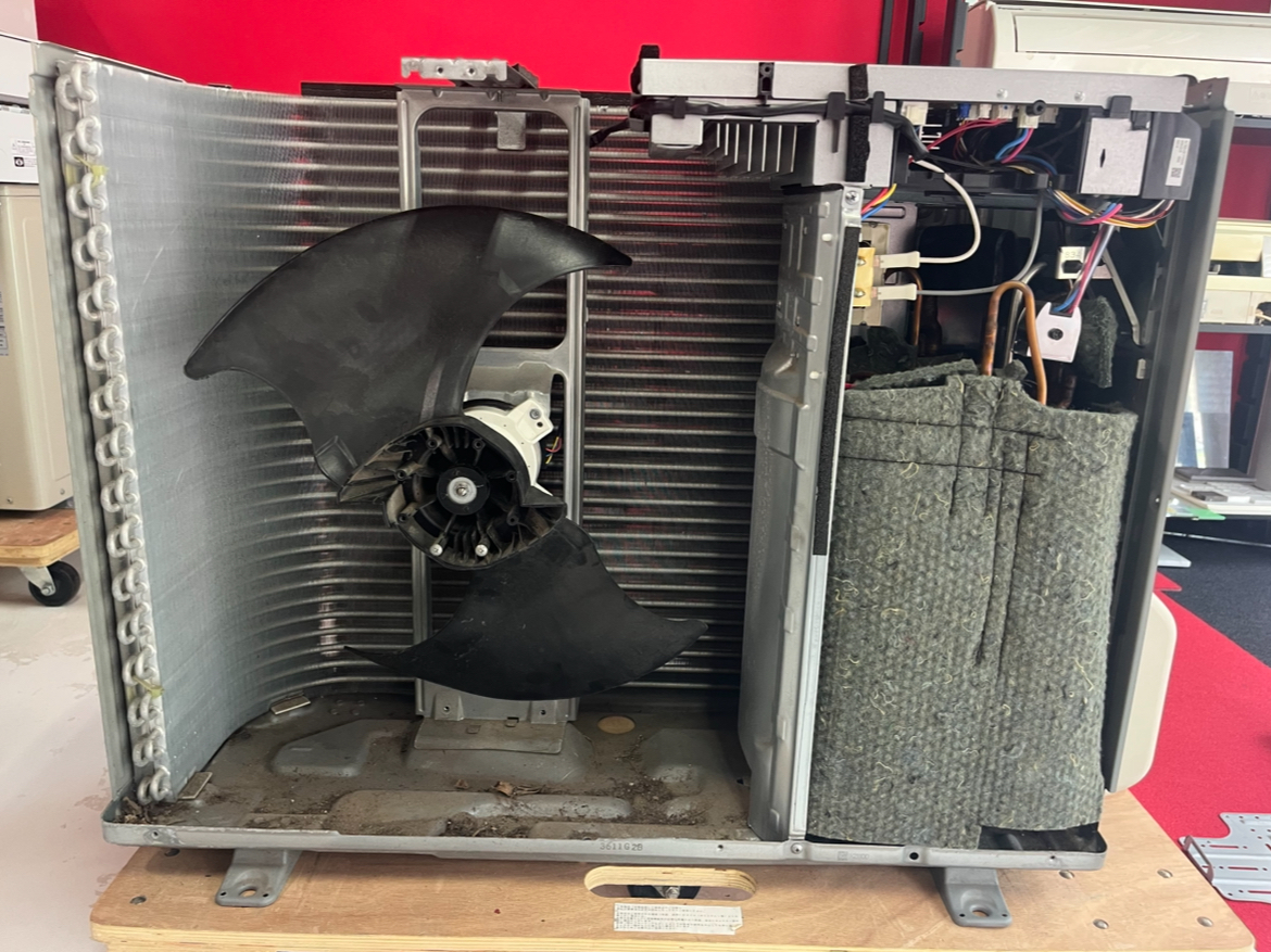 実は室外機の裏側、熱交換器と呼ばれる部分に汚れが溜まると冷却や排熱の効率が低下しエアコンの効きが悪くなったりします。さらにはそれに伴って電気代が高くなったりします。