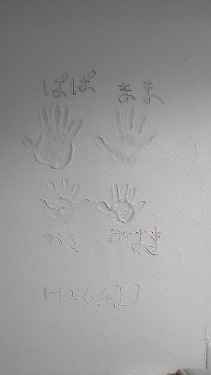 ↓こちらはそのときに、ロフトの壁につけた家族の手形です。(末っ子はまだ生まれていません)